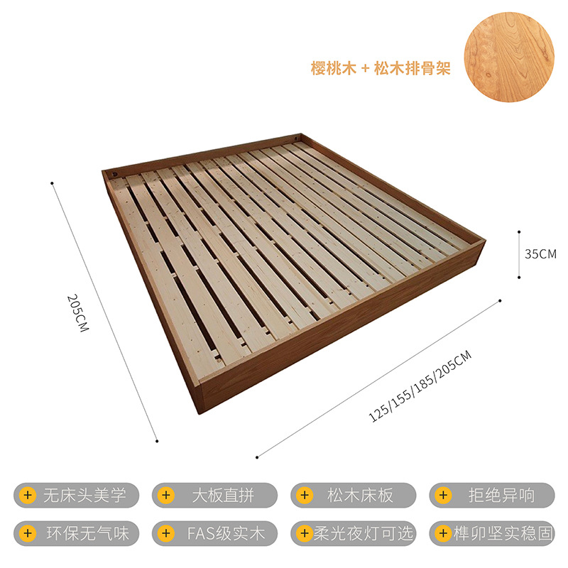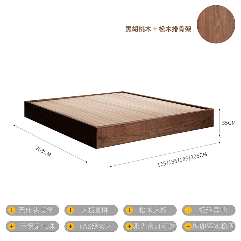 일본식 비 침대 옆 서스펜션 침대 블랙 호두 단단한 나무 침대 더블 침대 다다미 낮은 침대가있는 북유럽 비 등받이 조명스토어 가기