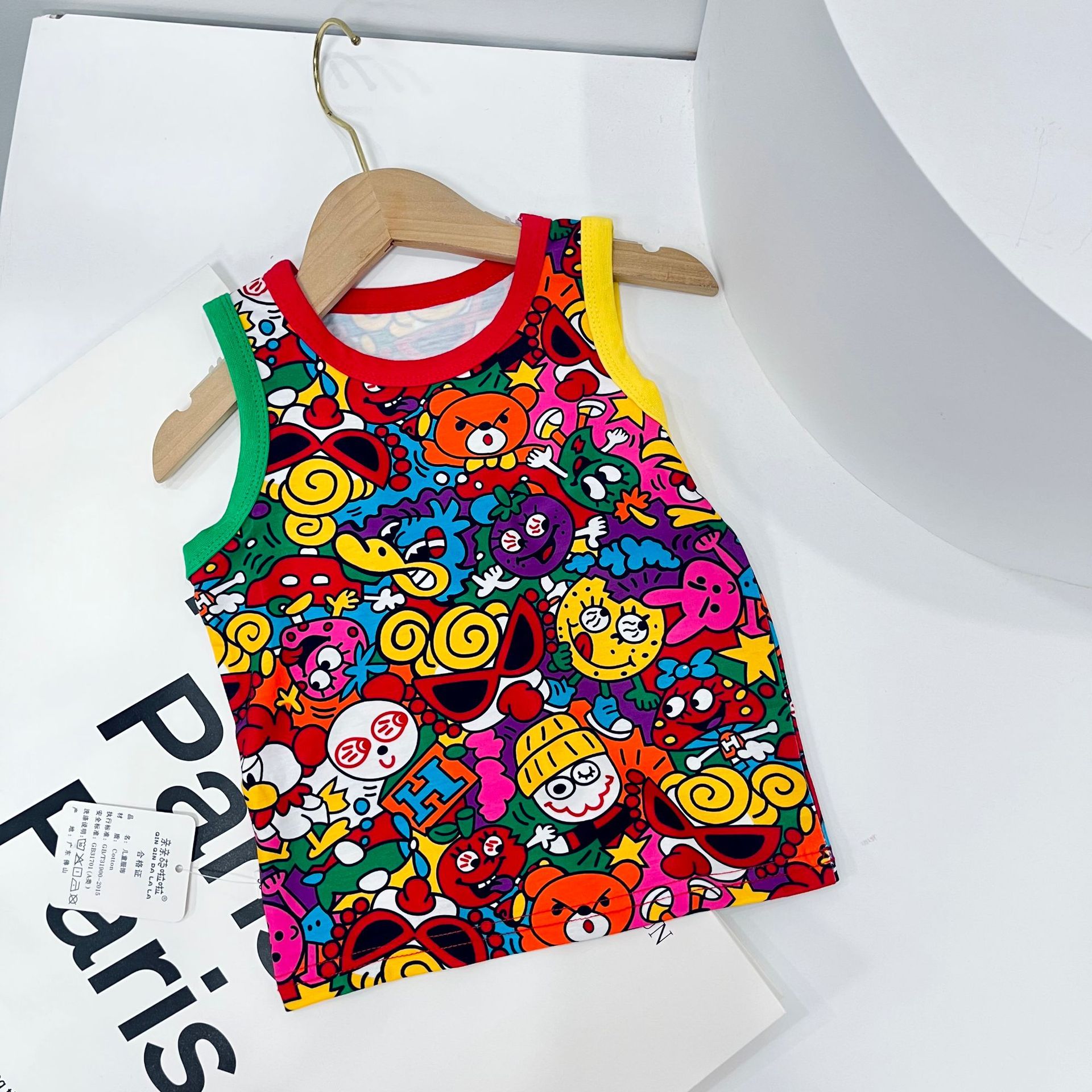 남자들의 여름 2024 새로운 아동복 티셔츠 트렌디 브랜드 아동복 남성 아기 민소매 조끼 기본 셔츠 지원 세대스토어 가기