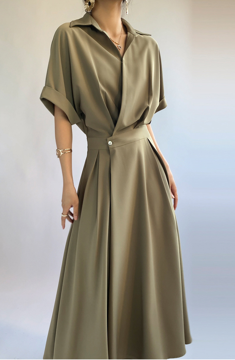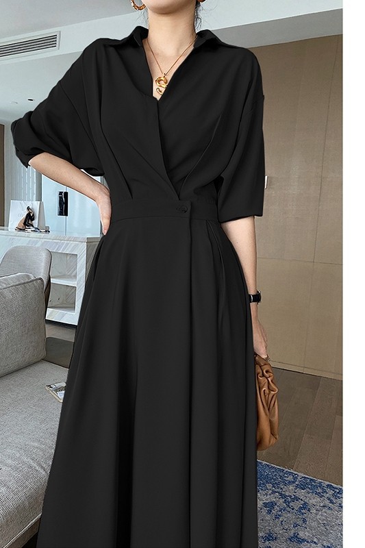 QZ012-드레스 플러스 사이즈 여성 2025 여름 뚱뚱한 MM 허리 커버 배꼽 롱 스커트 셔츠 칼라 스커트