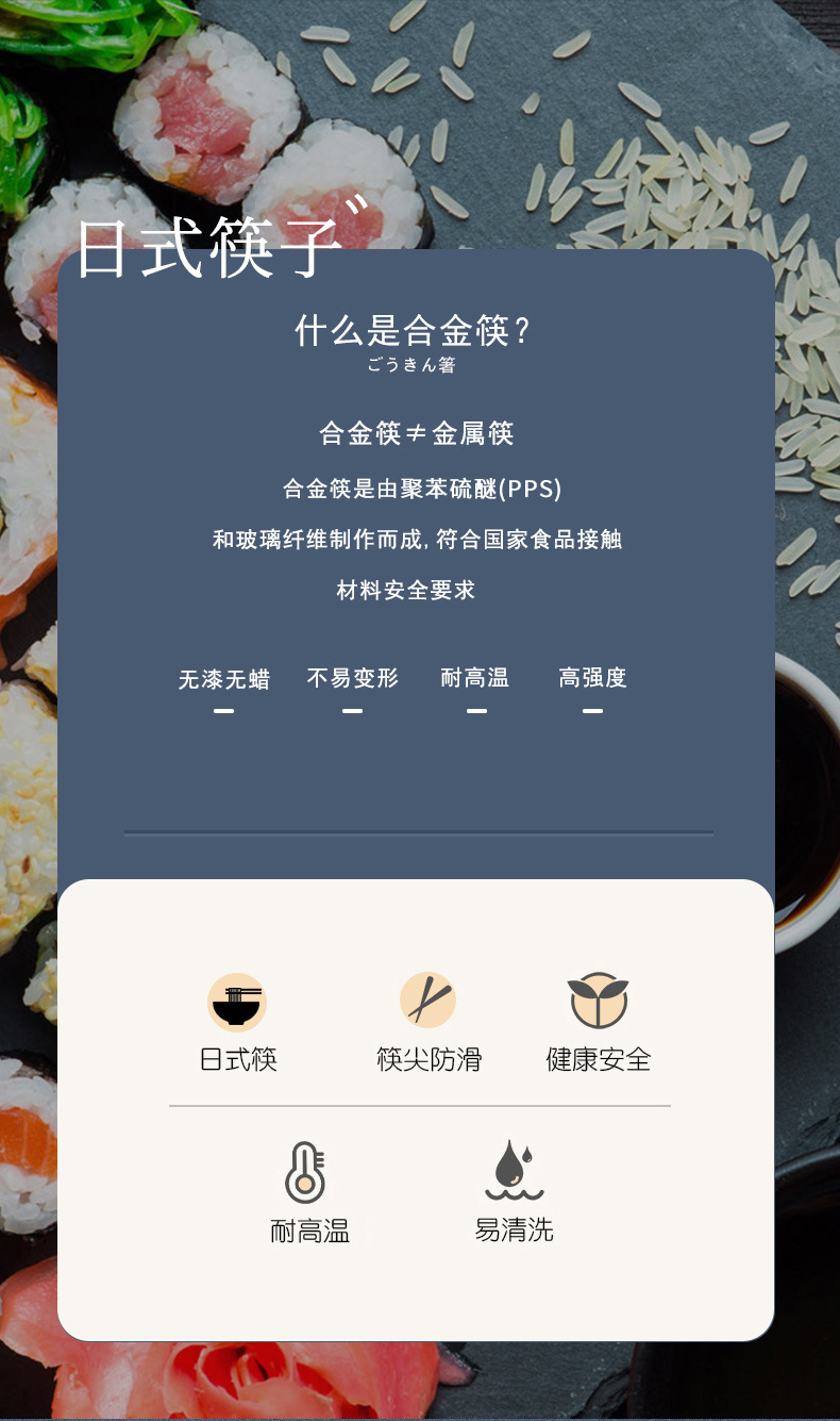 일본식 합금 젓가락, 고온에 강하고 미끄럼 방지, 도매, 성인용 고급 비스테인리스 식기, 식기세척기 사용 가능, 상업용스토어 가기