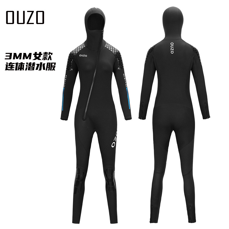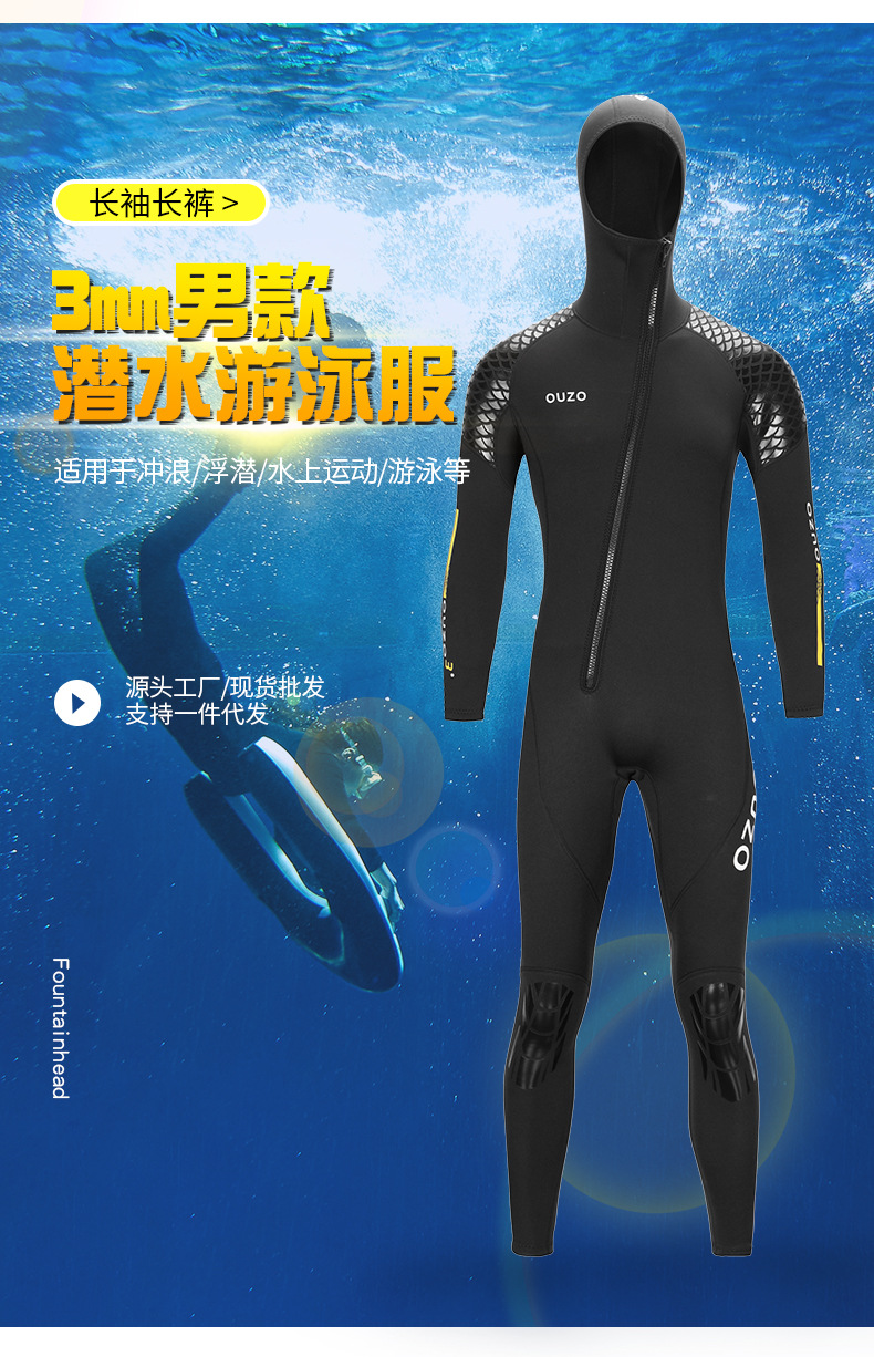 3mm潜水服男女连帽连体潜水衣 加厚防寒保暖冲浪潜水浮潜冬泳湿衣