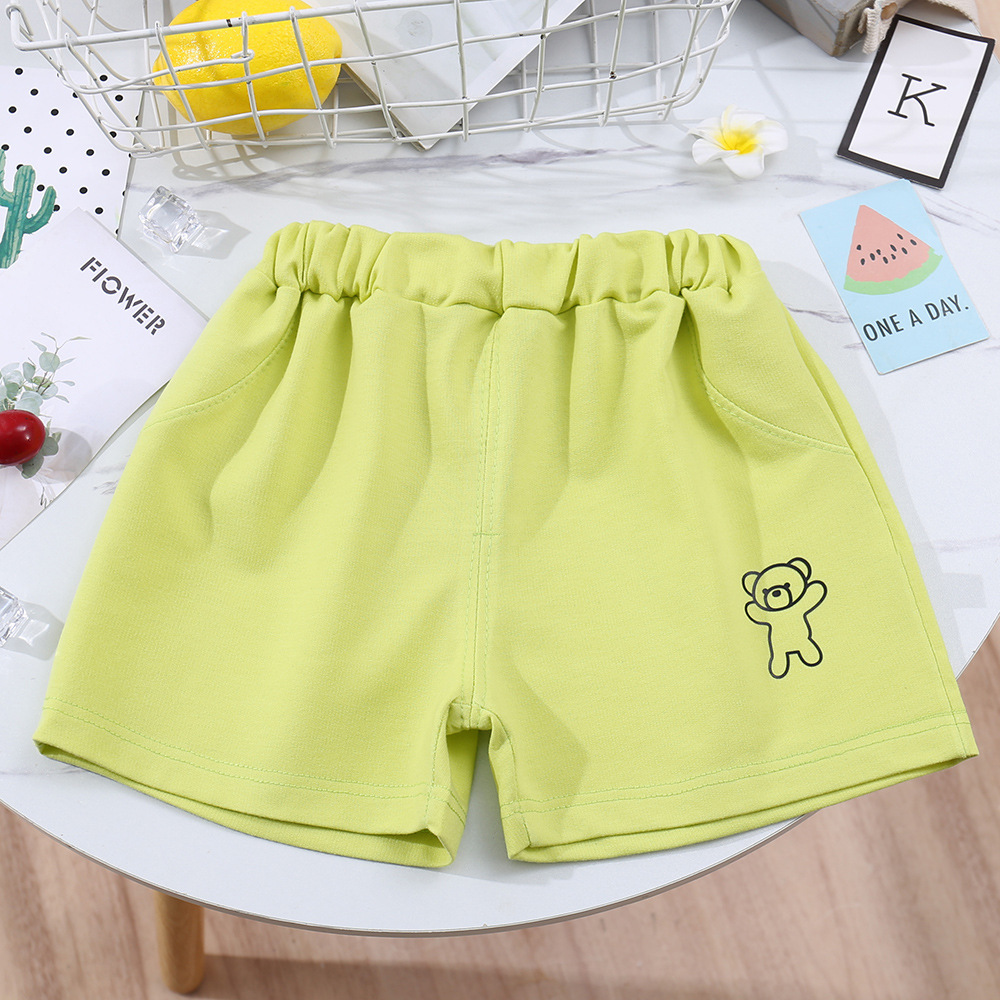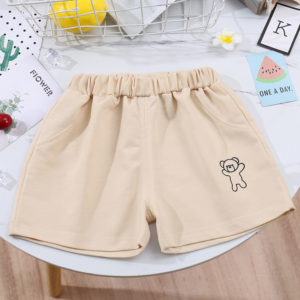어린이 바지 2022 여름 새로운 면 캐주얼 바지 남아 겉옷 느슨한 반바지 단색 만화 어린이 비치 바지스토어 가기