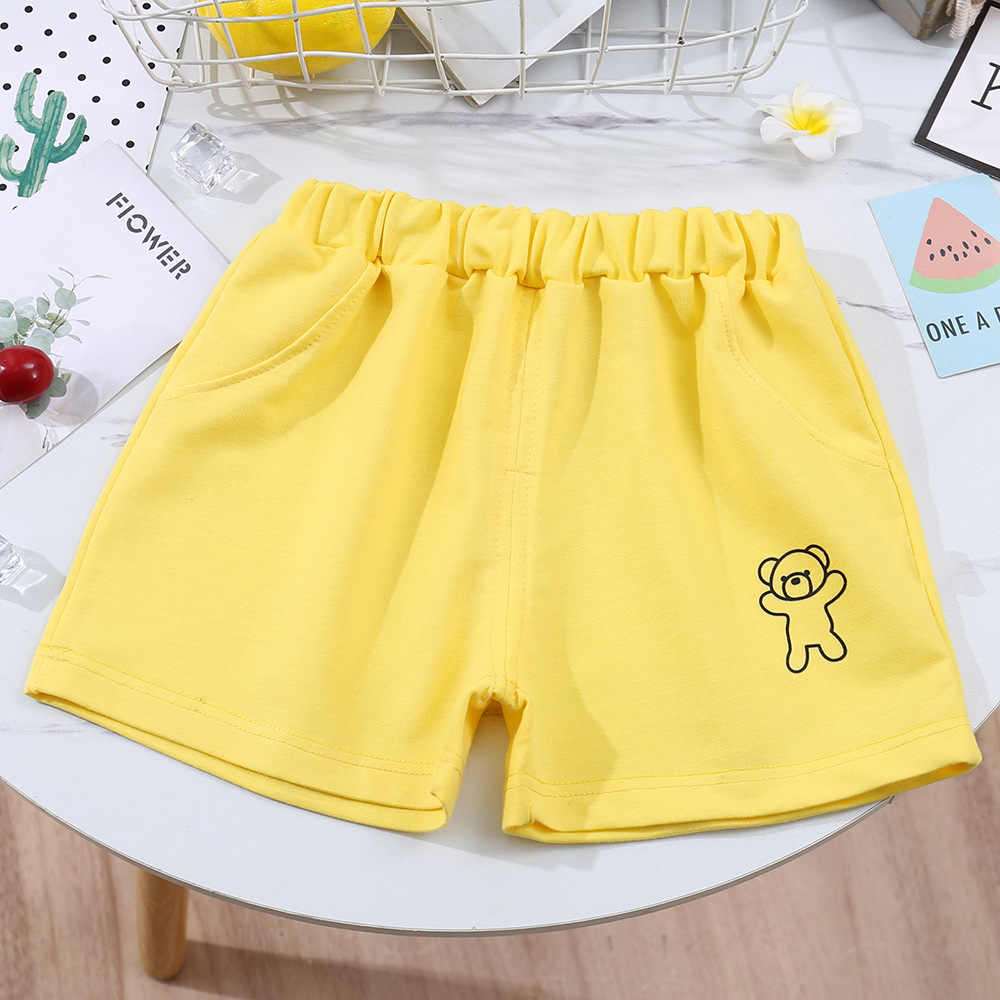 어린이 바지 2022 여름 새로운 면 캐주얼 바지 남아 겉옷 느슨한 반바지 단색 만화 어린이 비치 바지