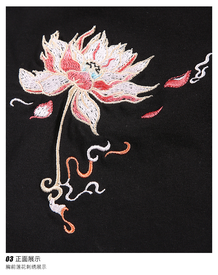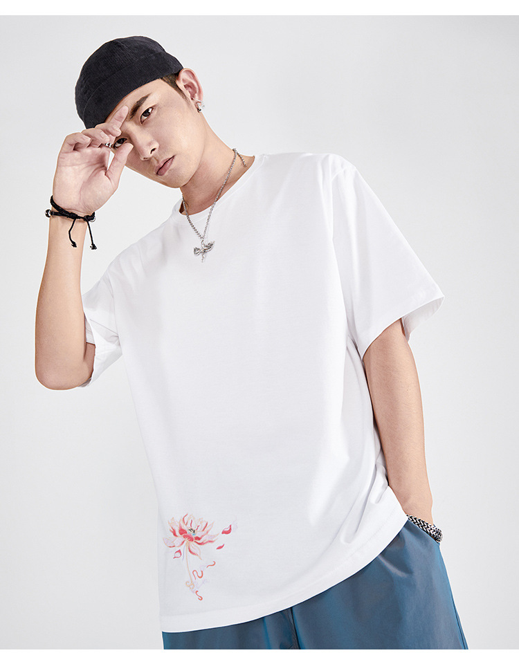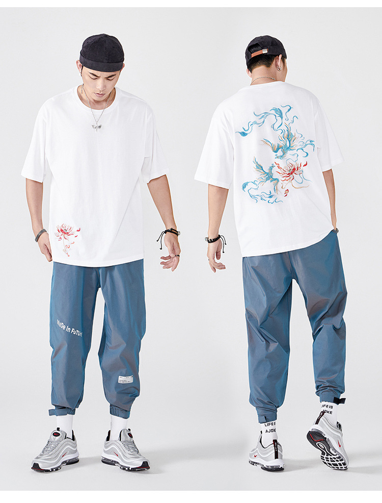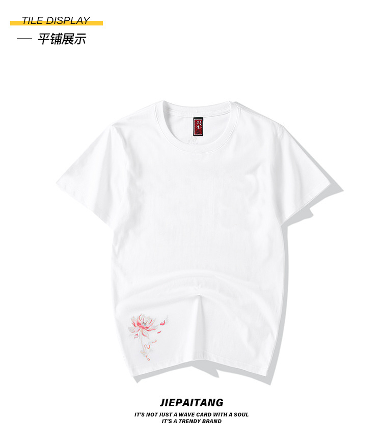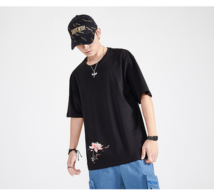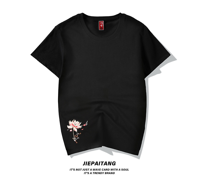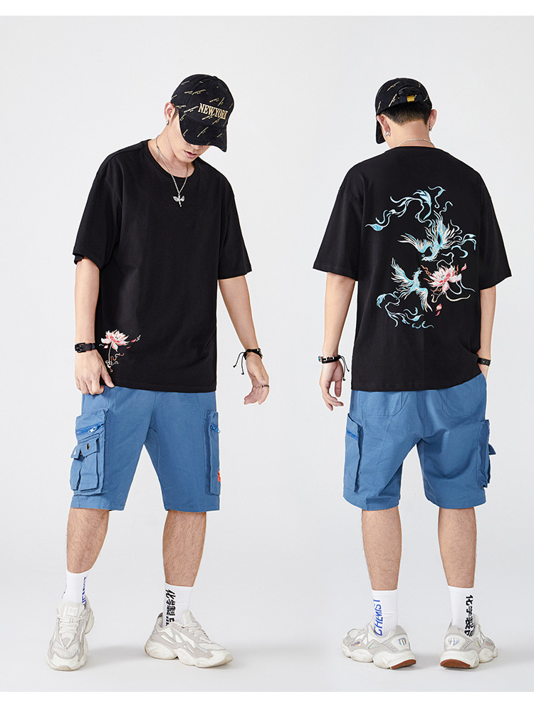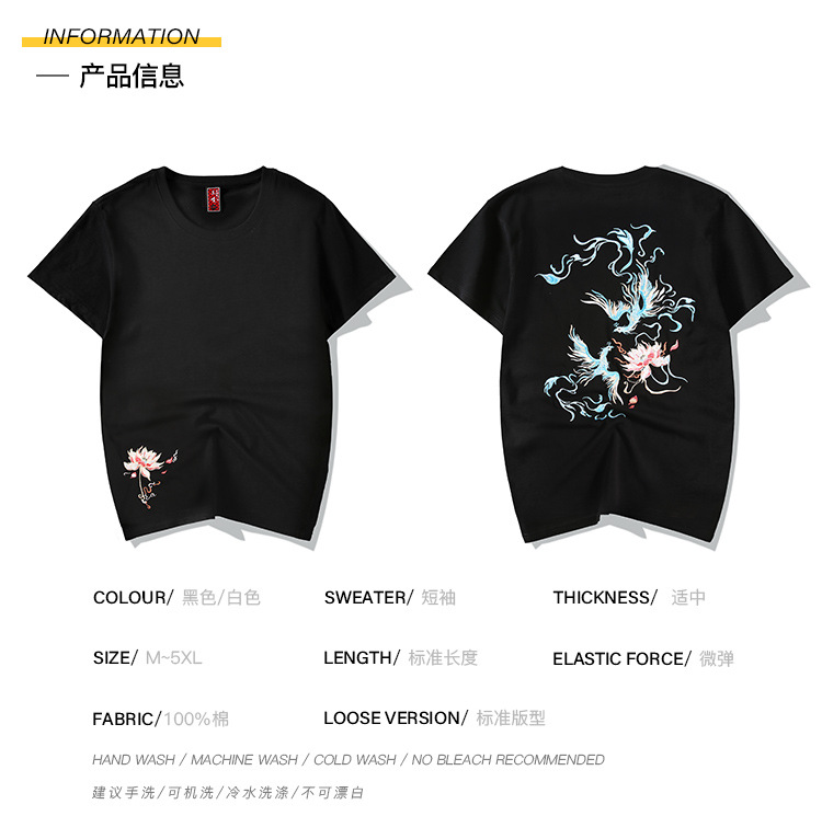 중국풍 반팔 티셔츠 남성 여름 루즈핏 큰 사이즈 청년용 봉황 자수 반팔 흡습 발한 기능