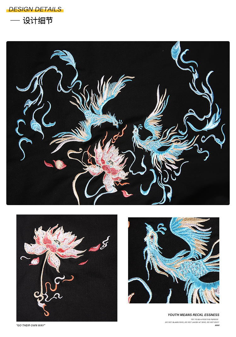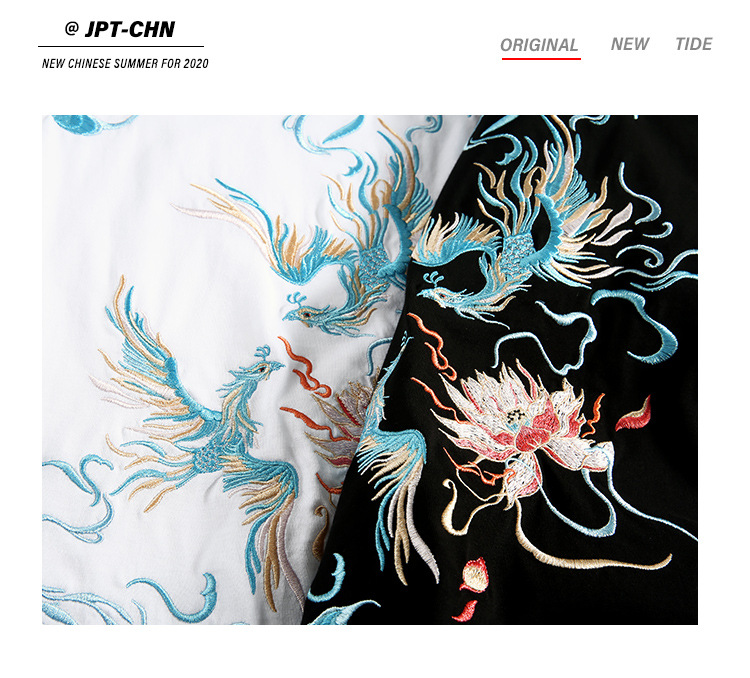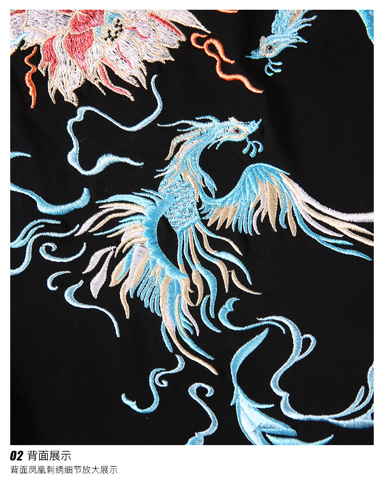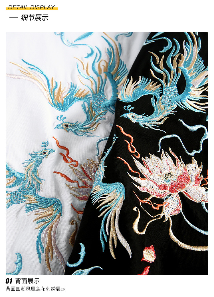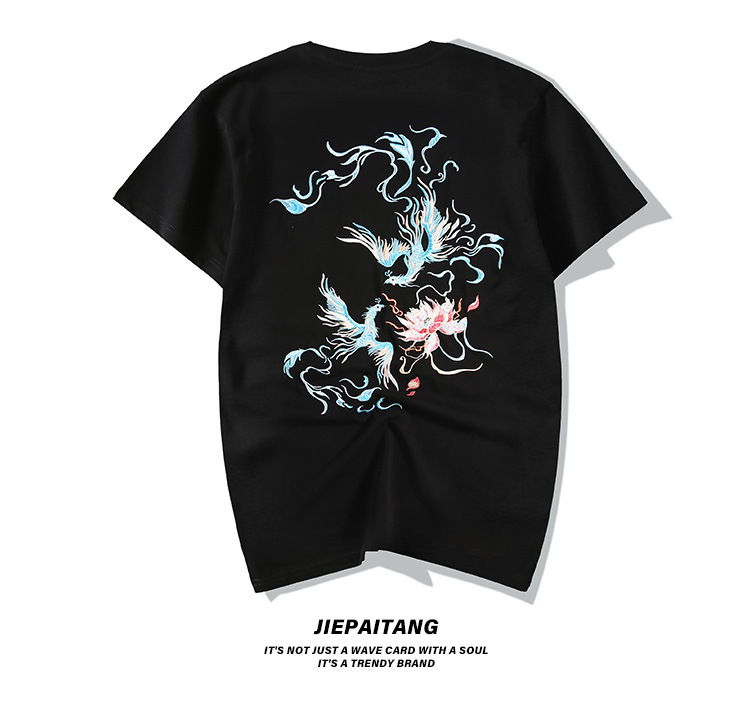 중국풍 반팔 티셔츠 남성 여름 루즈핏 큰 사이즈 청년용 봉황 자수 반팔 흡습 발한 기능스토어 가기