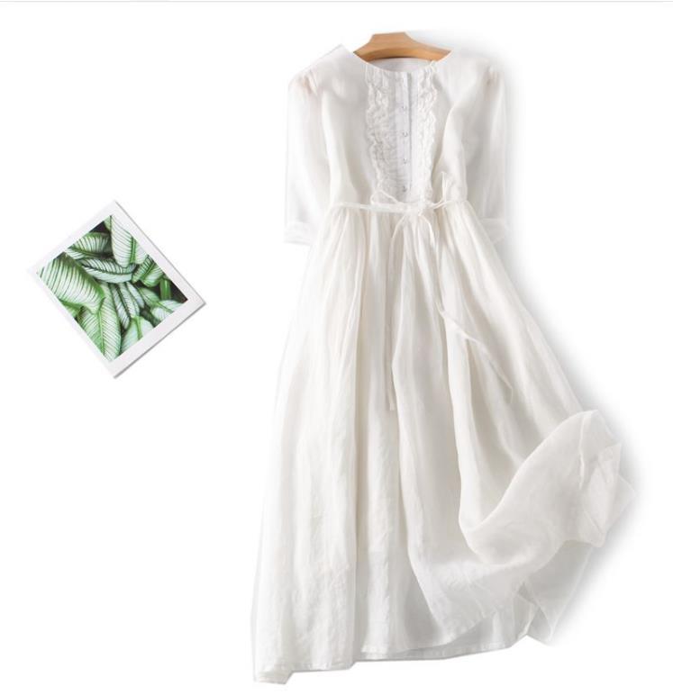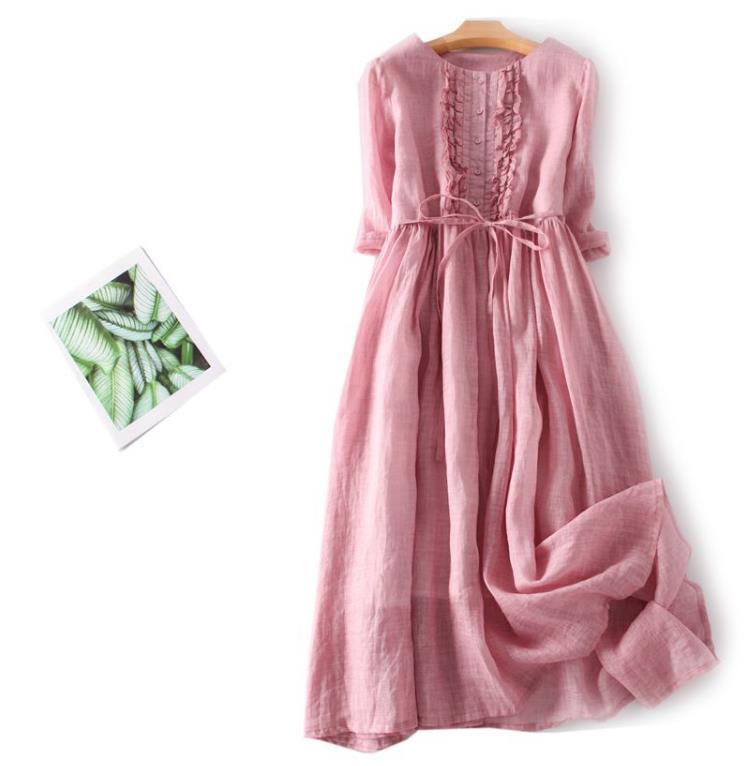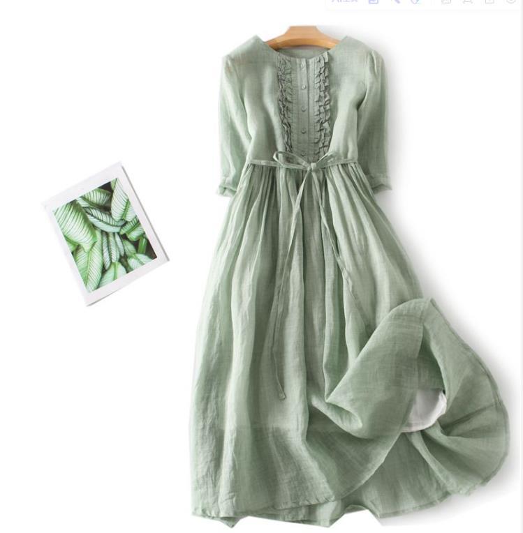 2025 여름 신상 레트로 라운드넥 이중 레이어 요정풍 레이스업 허리 조절 미디 기장 여행 휴가 원피스 롱스커트스토어 가기