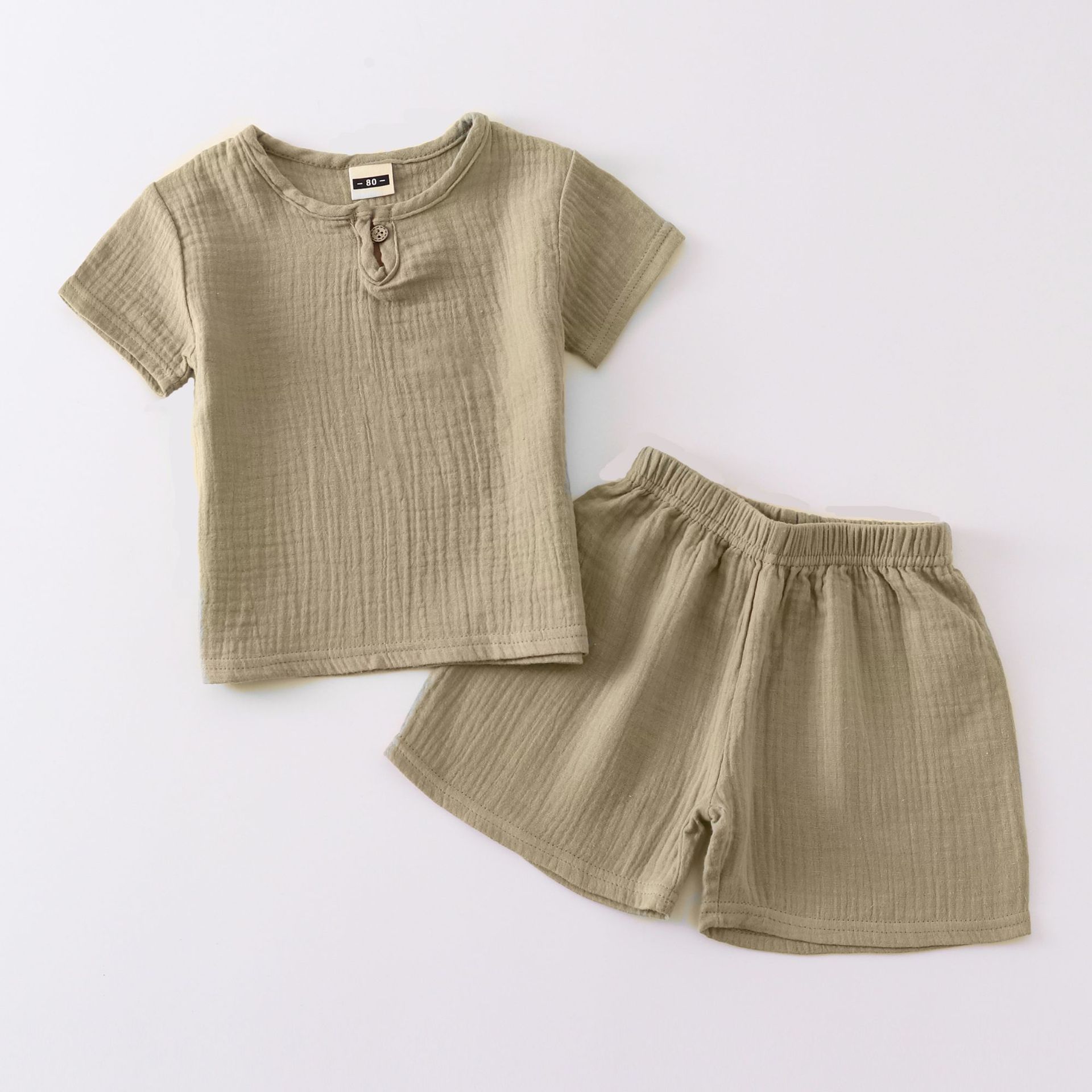 소년 소녀 용 아동복 반팔 여름 세트 아동면과 린넨 버튼 반팔 티셔츠 반바지 얇은 투피스 세트