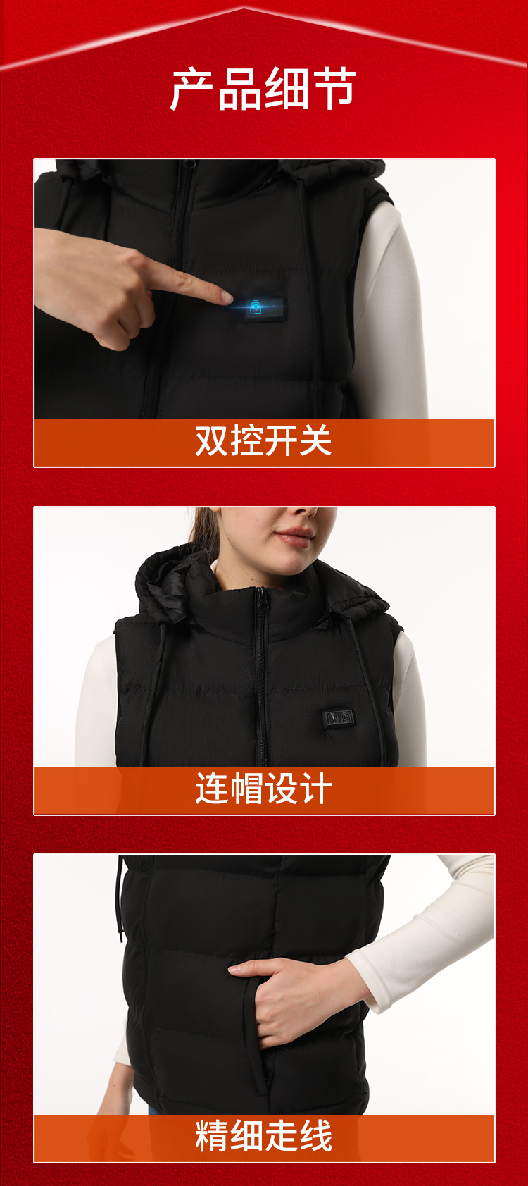 남성과 여성을위한 USB 스마트 난방 조끼 용 국경 간 난방 조끼 난방 의류 야외 후드 전기 난방 조끼스토어 가기
