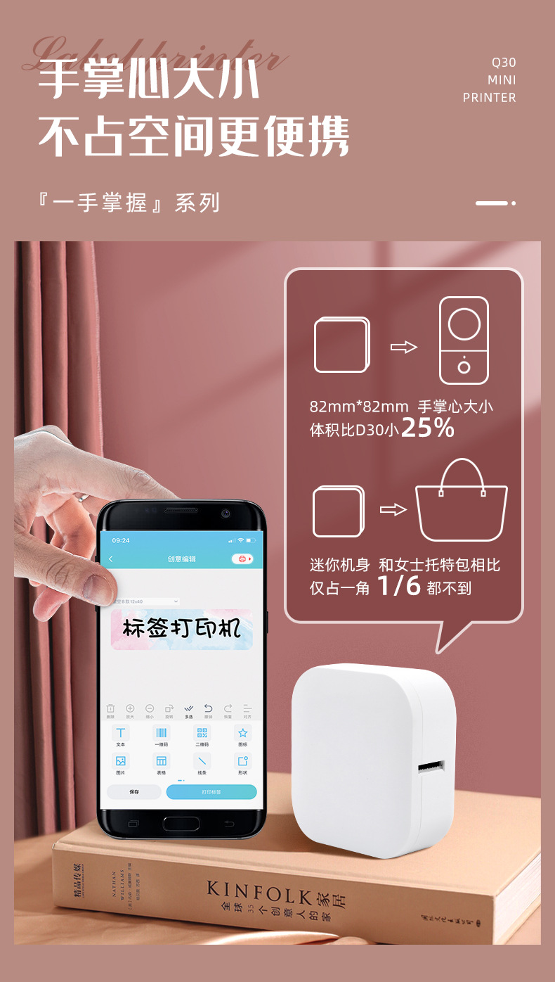 • Q30S 핑크 건식 배터리 버전 (흰색 12*40mm-80 소모품 롤 포함)