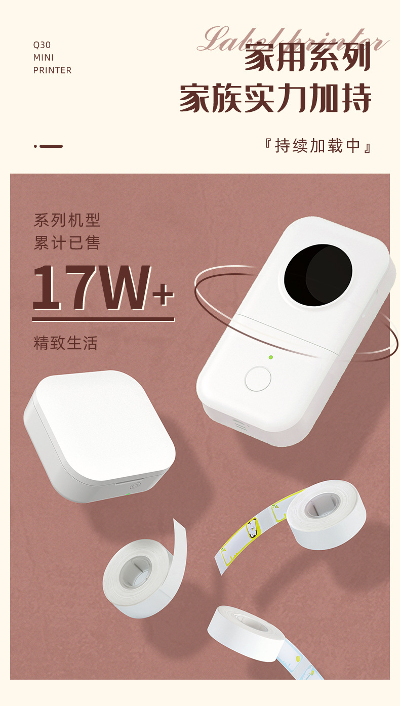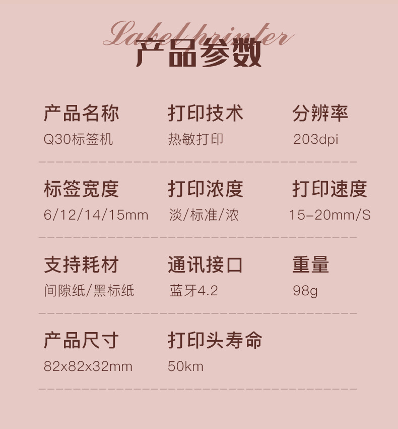 • Q30 핑크 건식 배터리 버전 (흰색 12*40mm-80 소모품 롤 포함)