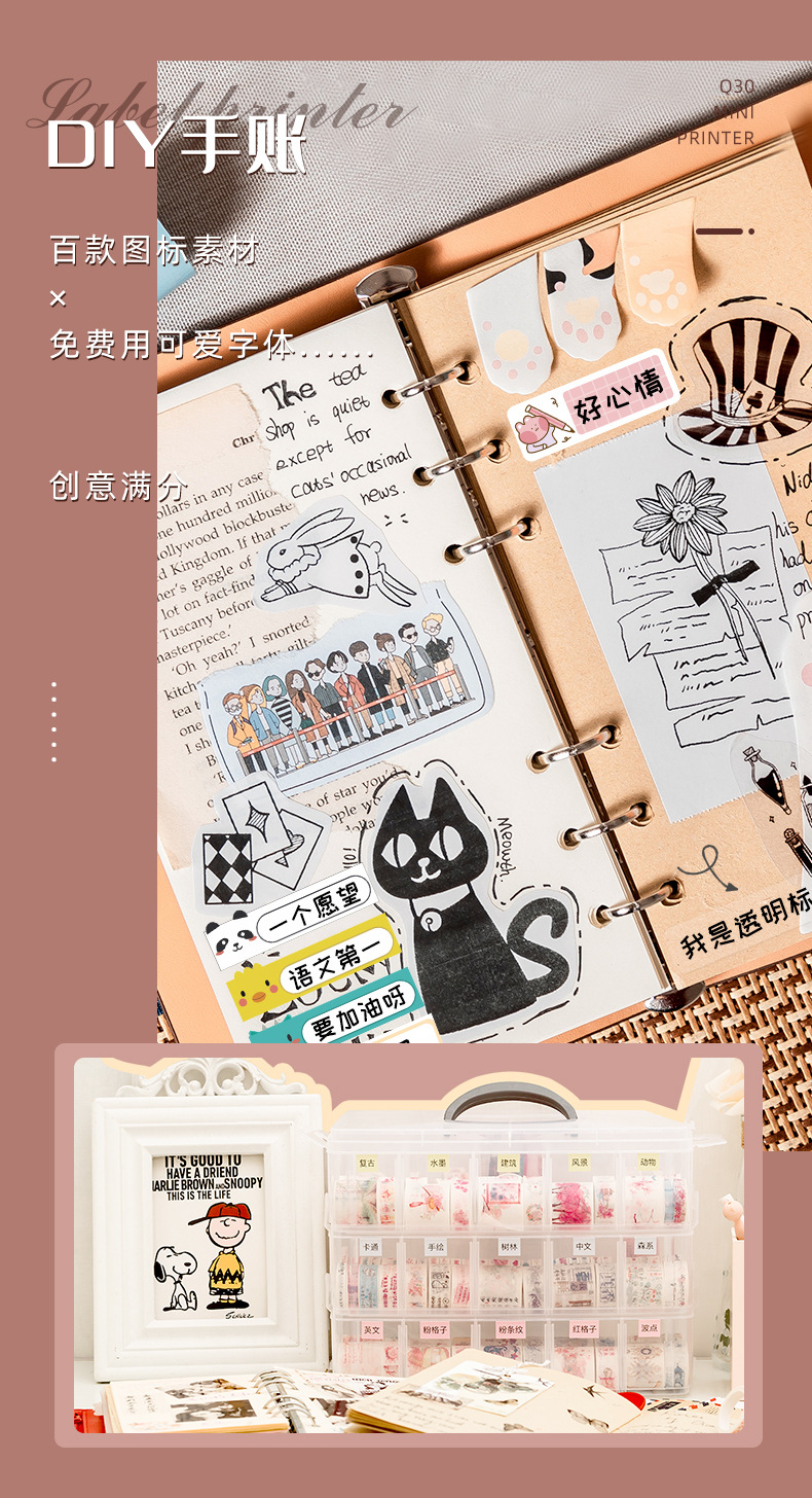 PhomemoQ30 라벨 프린터 미니 스티커 작은 휴대용 홈 접착 열 라벨 기계