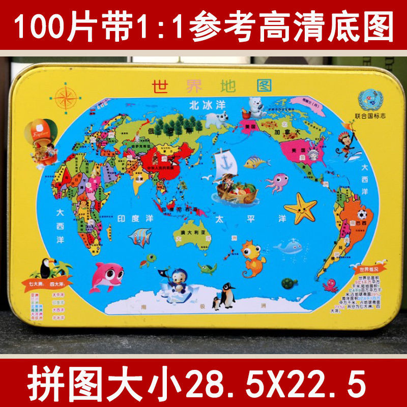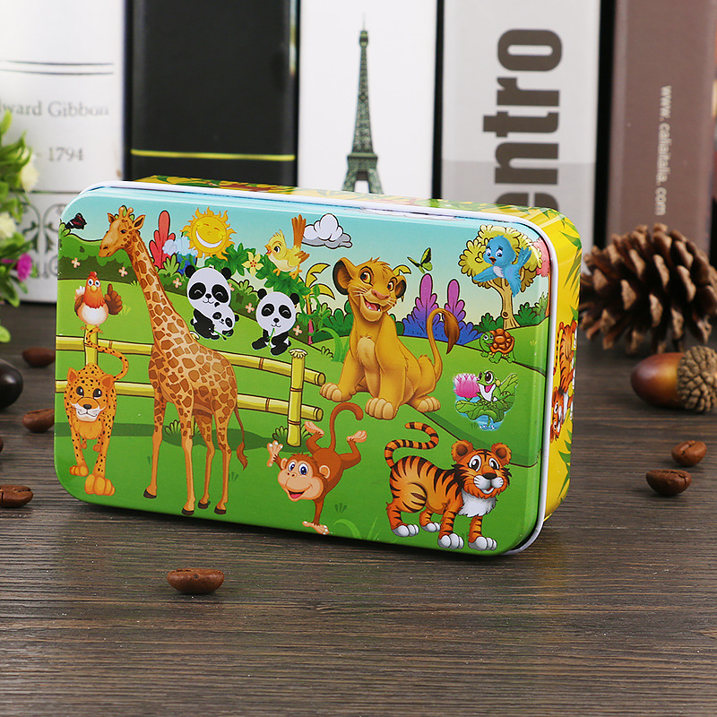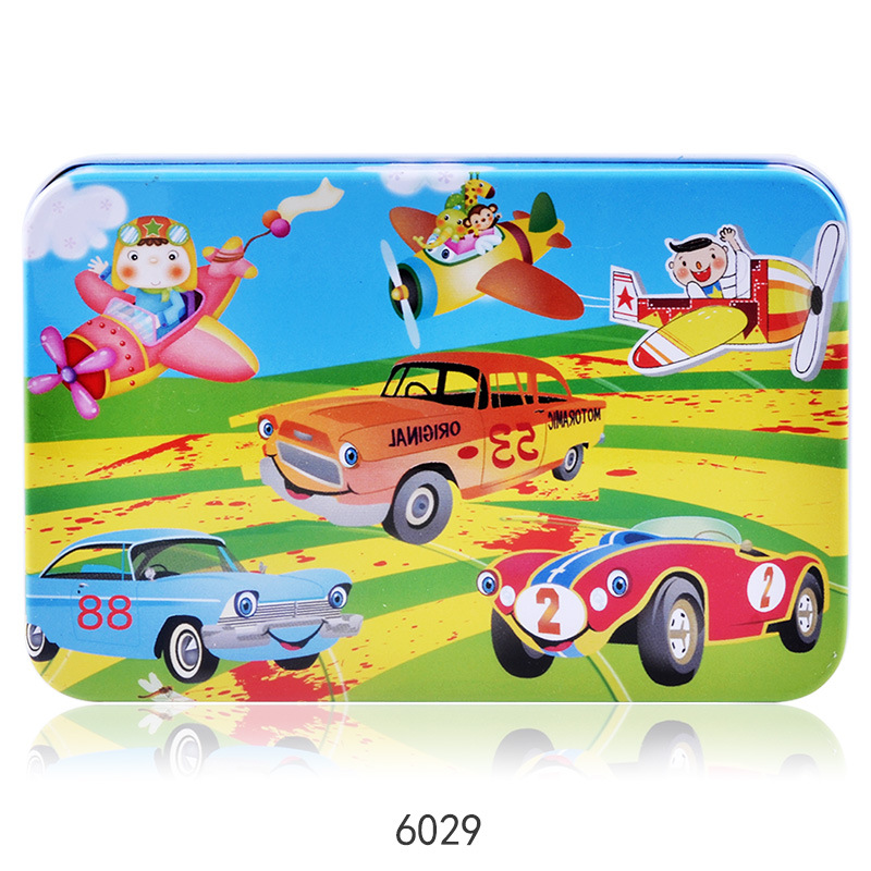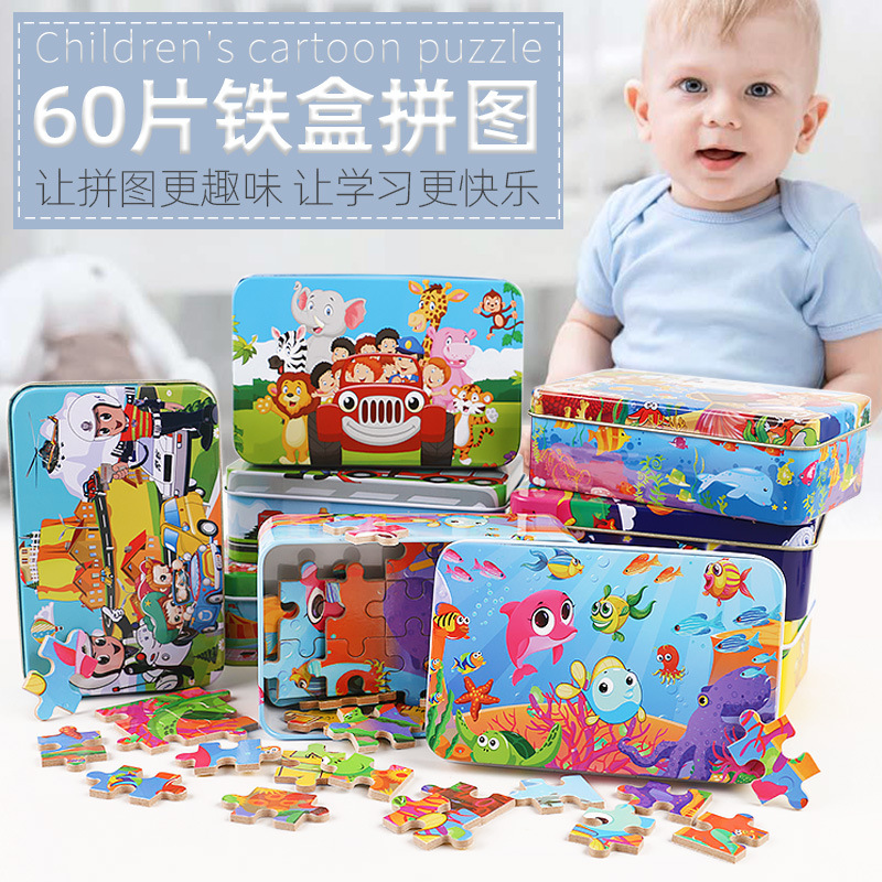 나무 어린이 철 상자 퍼즐 60/100/200 조각 교육 장난감 만화 비행기 퍼즐 유치원 나무스토어 가기