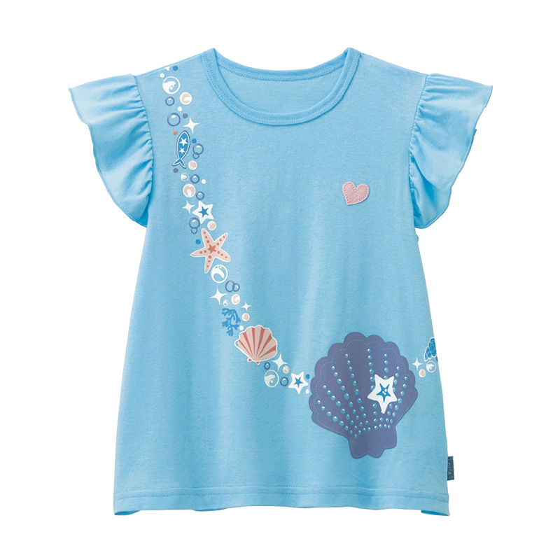 25 새로운 여자 여름 옷 여자 Feifei 슬리브 티셔츠 반팔 셔츠 순수 코튼 아기 소녀 조끼 일본식 중대형 어린이스토어 가기