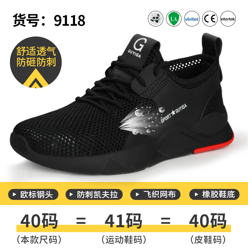 여름 통기성 남성 국경 강철 발가락 안전 신발 메쉬 통기성 안티 스매싱 안티-피어싱 경량 안전 보호 작업스토어 가기