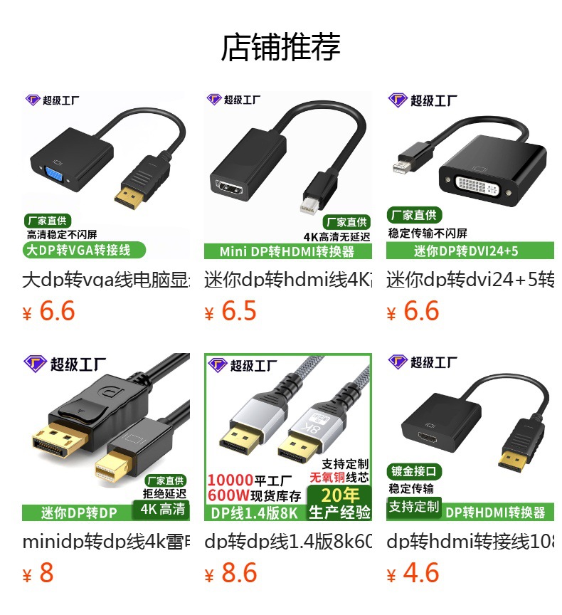 minidp to vga转换器迷你雷电接口电脑显卡转接显示器迷你dp转vga