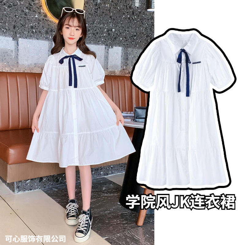 여아 원피스 2025 신상 여름 반팔 순면 컬리지 스타일 jk 스타일 공주 원피스 리본 원피스 중대형스토어 가기
