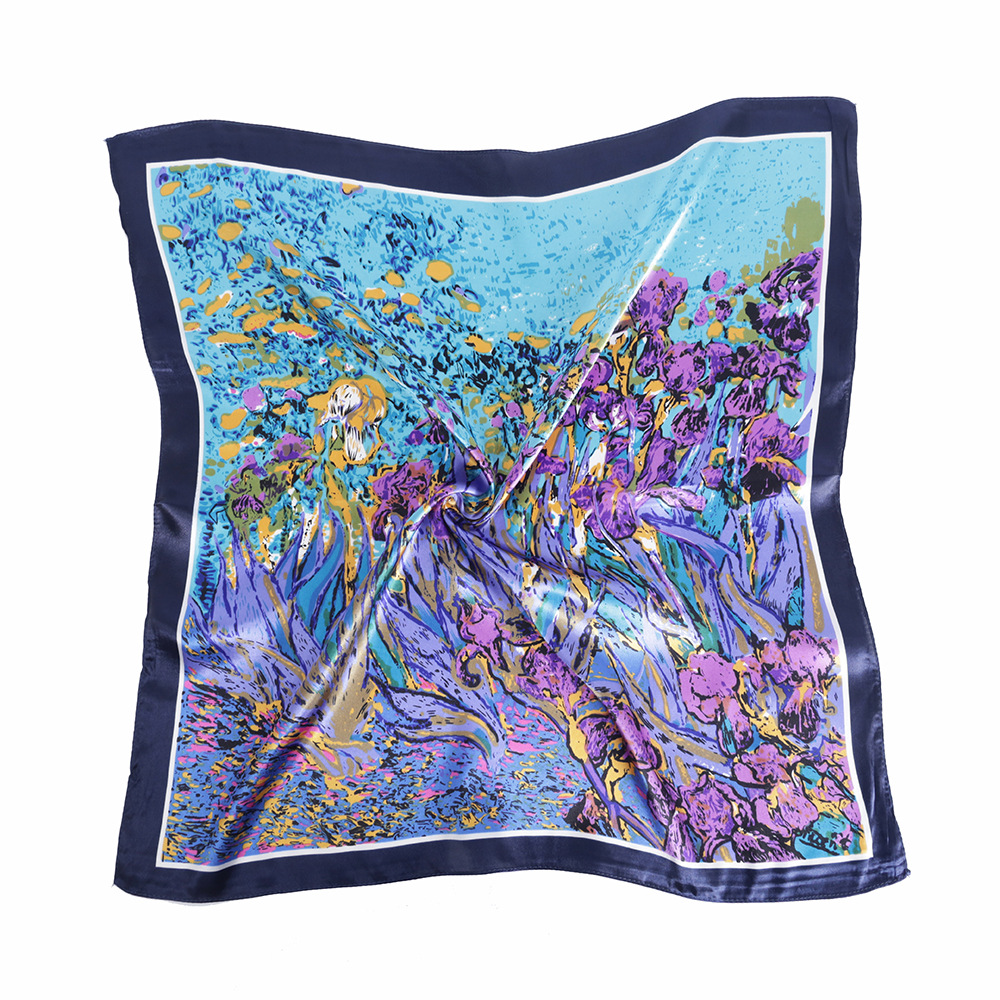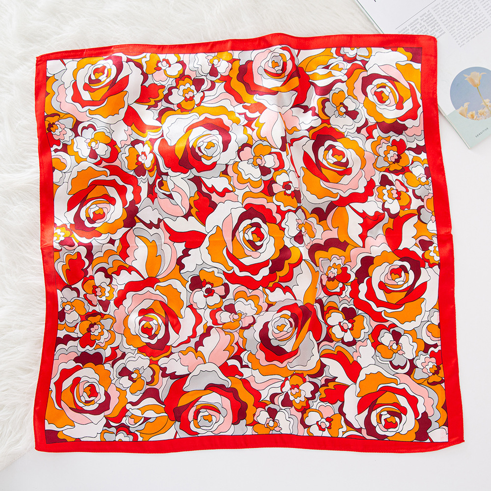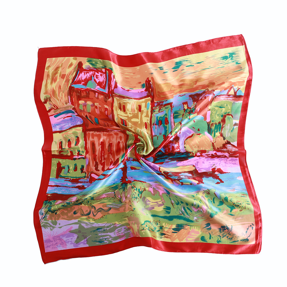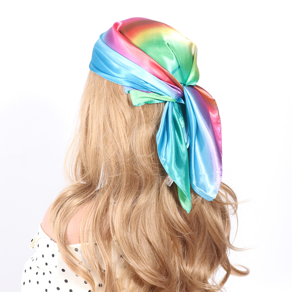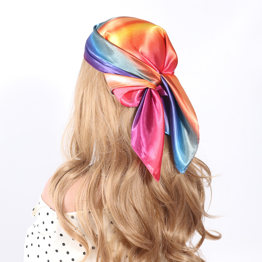 그라디언트 컬러 무지개 스카프 부드러운 새틴 댄스 공연 스카프 닫힌 발가락 꼰 대외 무역 스카프 작은 사각형 스카프