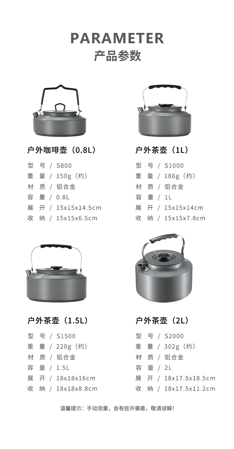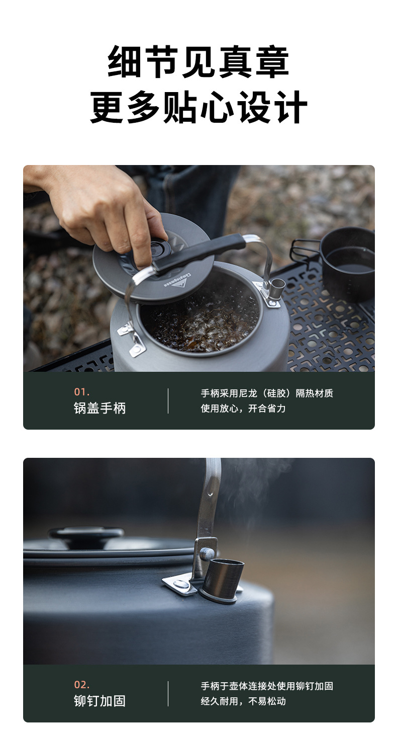 야외 S1500 캠핑 피크닉 끓는 물 차 커피 포트 휴대용 캠핑 용품 알루미늄 합금 끓는 물 주전자스토어 가기