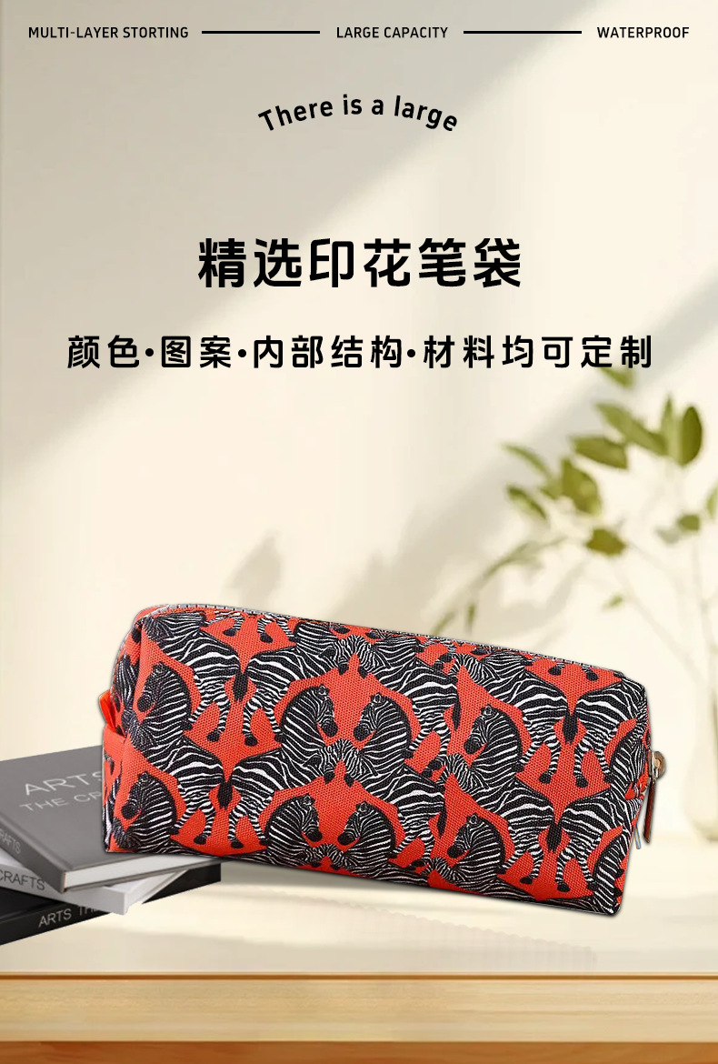 定制铅笔笔袋大容量高颜值小学生用品耐用棉质文艺印花简约文具盒