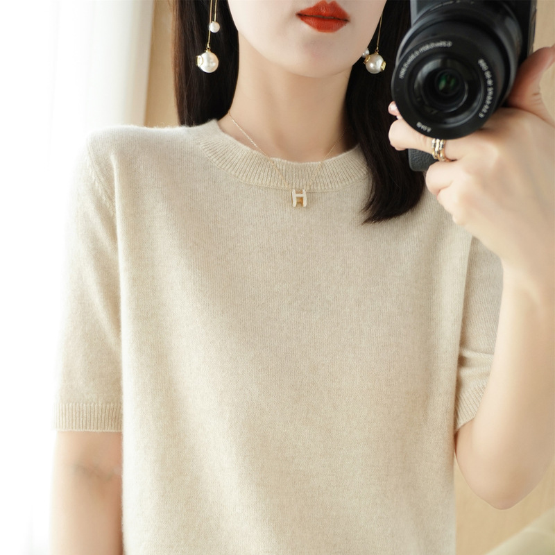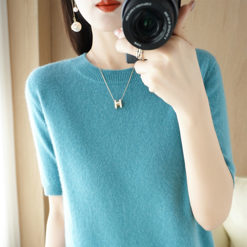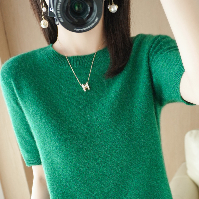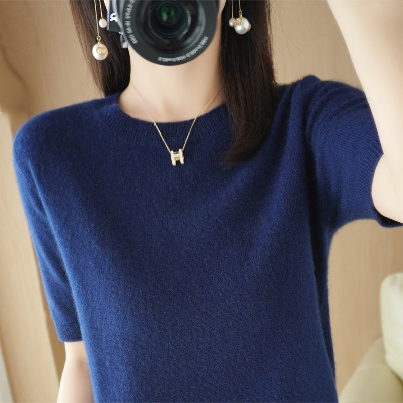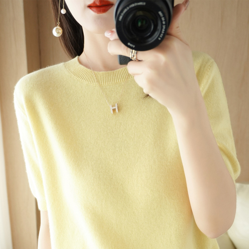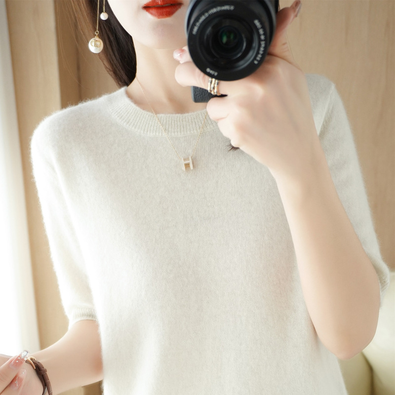 2025 봄 여름 신작 니트 반팔 여성 라운드 넥 바닥 니트 풀오버 반팔 스웨터 루즈 바닥 스웨터스토어 가기