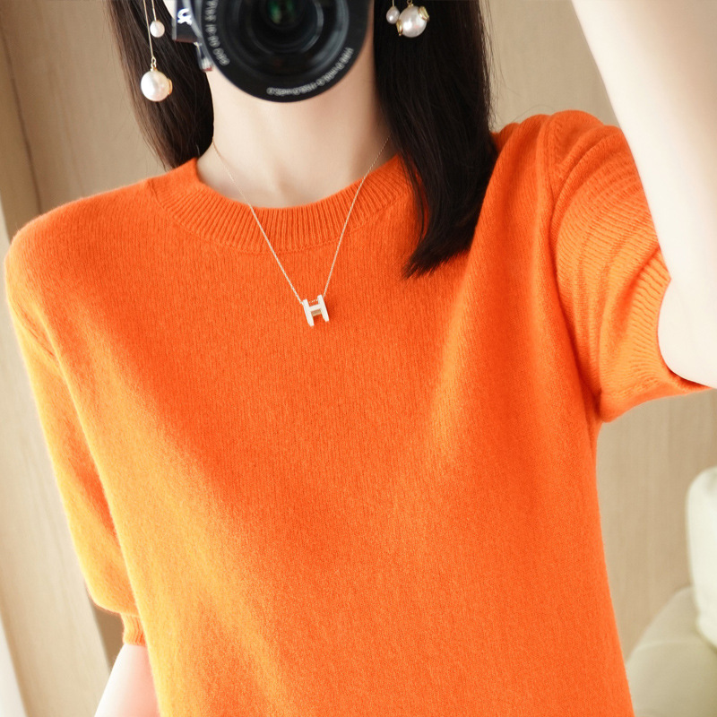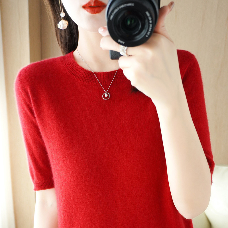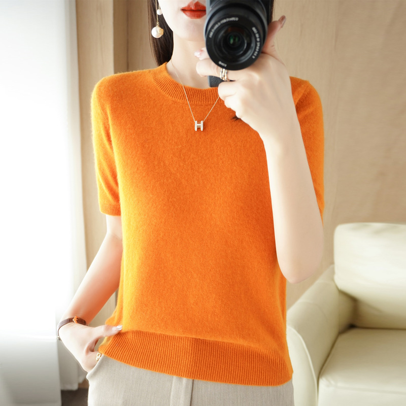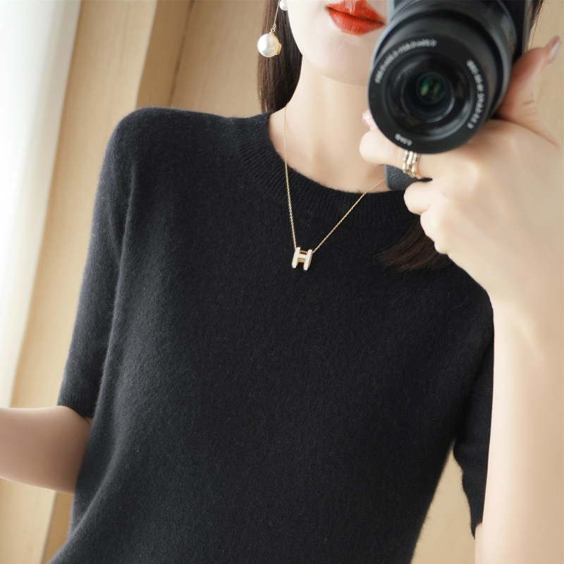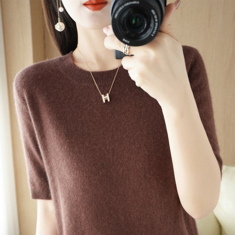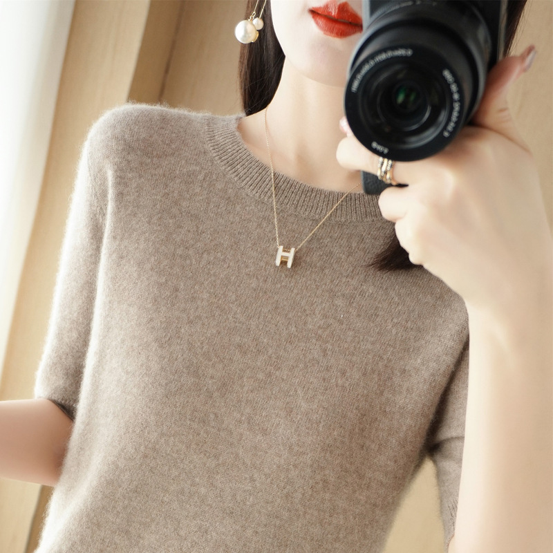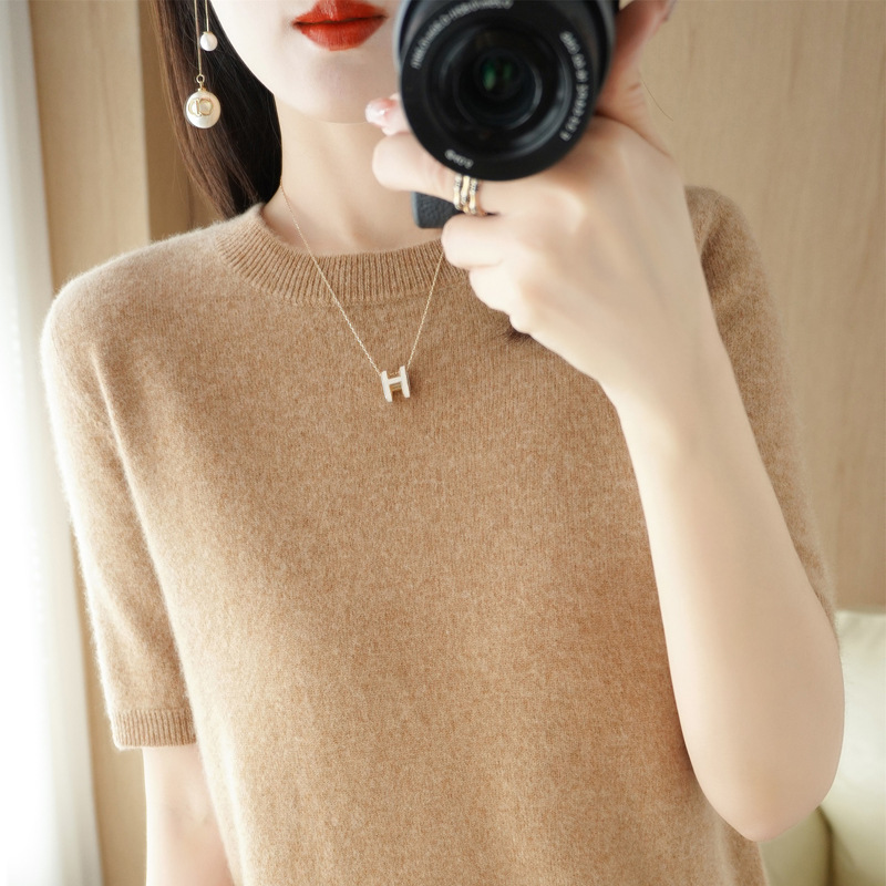 2025 봄 여름 신작 니트 반팔 여성 라운드 넥 바닥 니트 풀오버 반팔 스웨터 루즈 바닥 스웨터스토어 가기