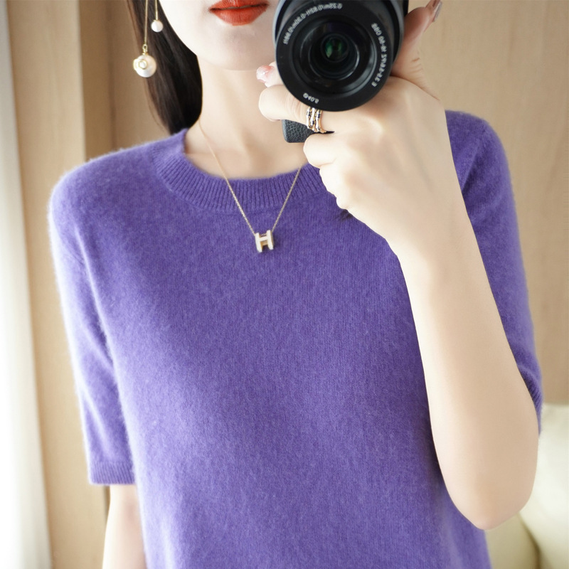 2025 봄 여름 신작 니트 반팔 여성 라운드 넥 바닥 니트 풀오버 반팔 스웨터 루즈 바닥 스웨터