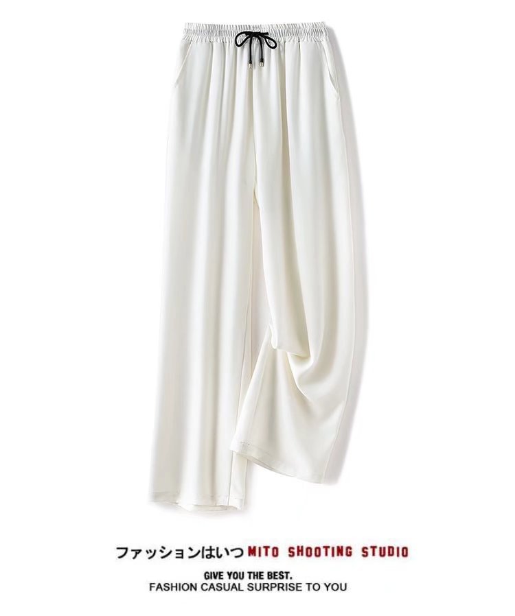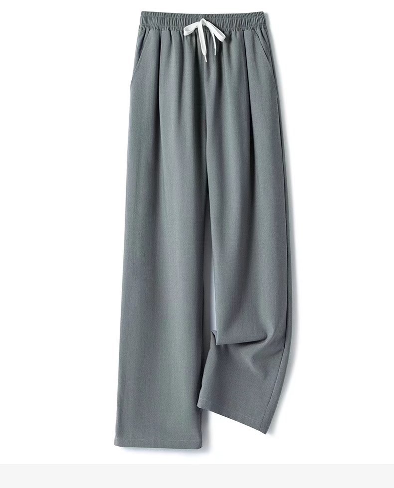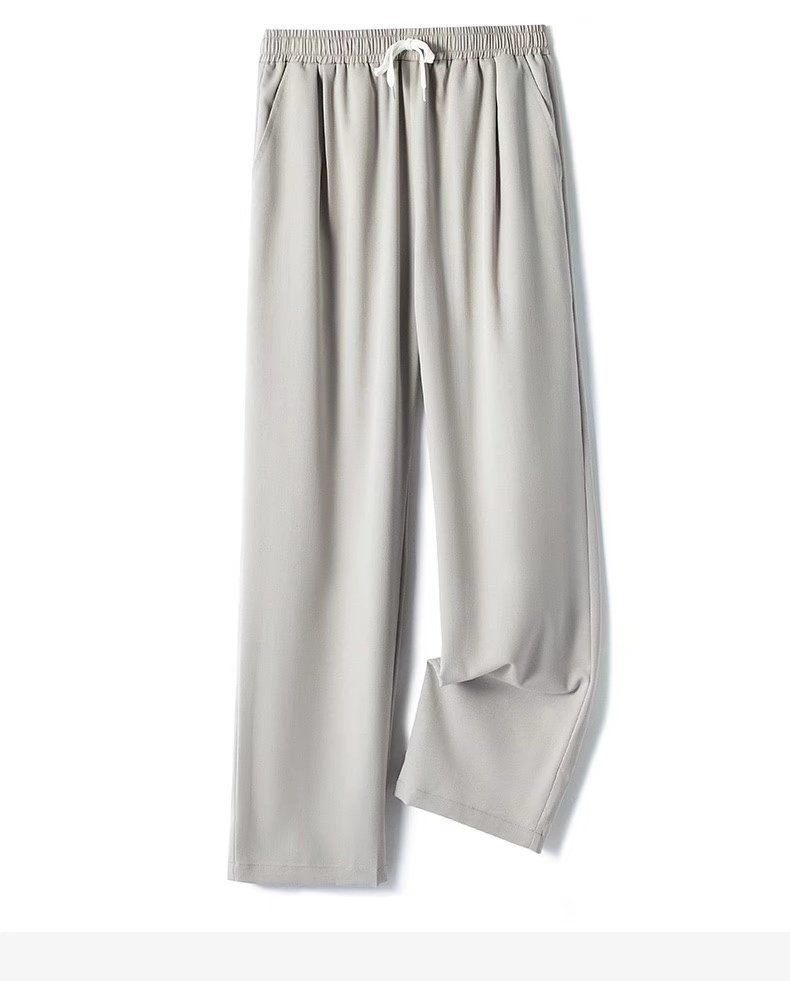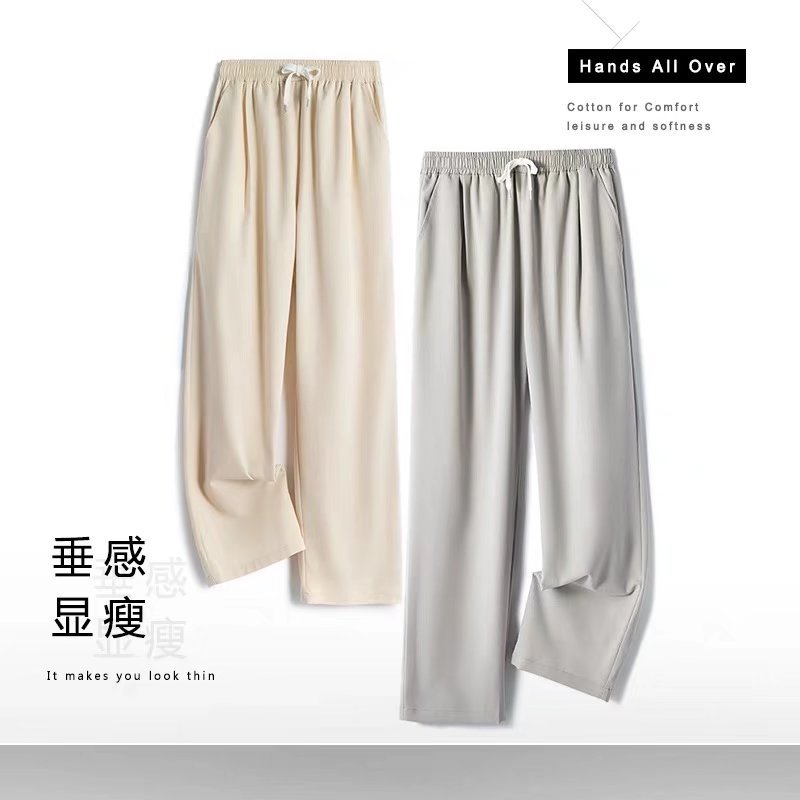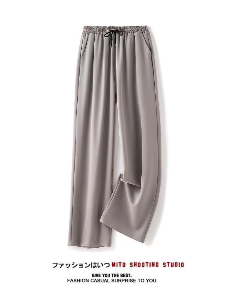 공장 도매 2022 봄 뉴 아이스 실크 와이드 레그 팬츠 남성 하이 센스 교수형 탄성 허리 느슨한 스트레이트 팬츠스토어 가기
