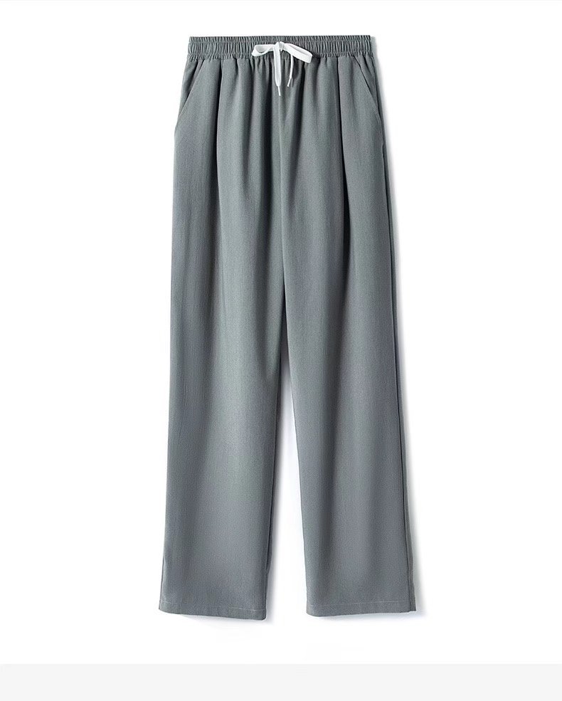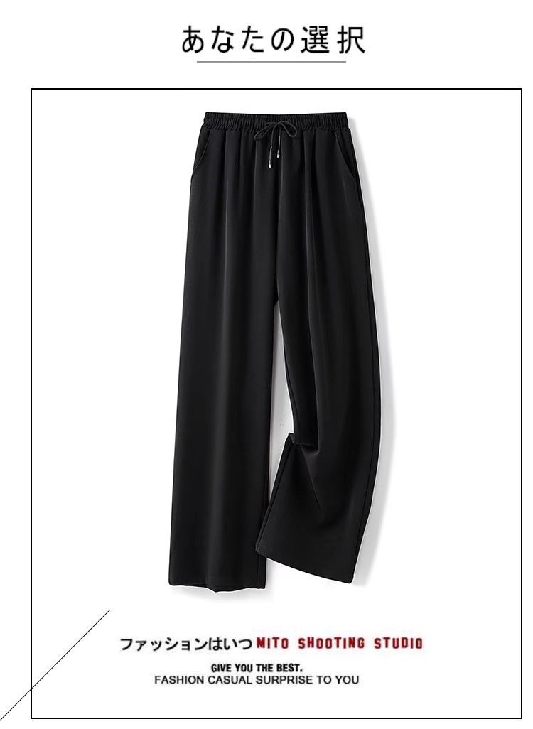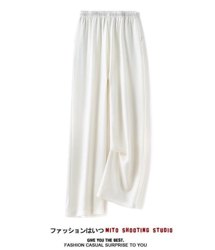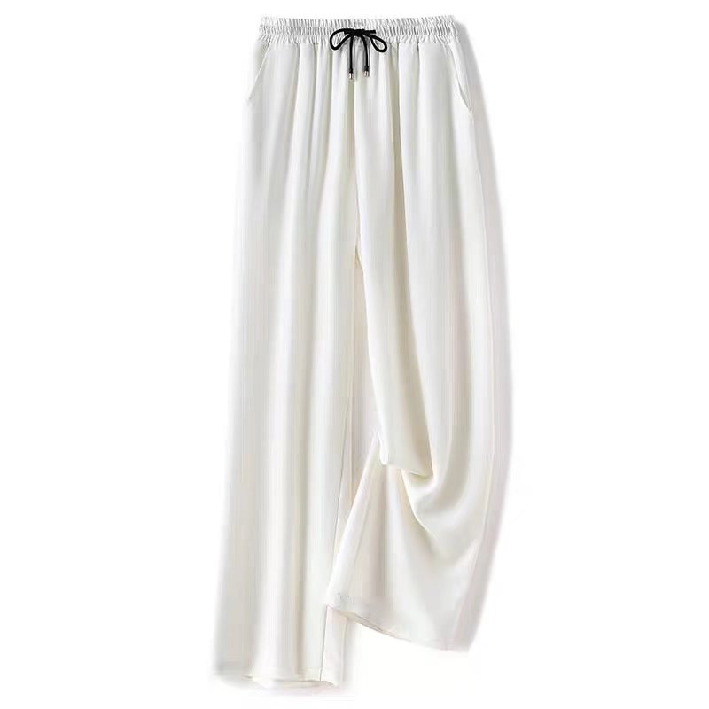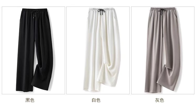 공장 도매 2022 봄 뉴 아이스 실크 와이드 레그 팬츠 남성 하이 센스 교수형 탄성 허리 느슨한 스트레이트 팬츠스토어 가기