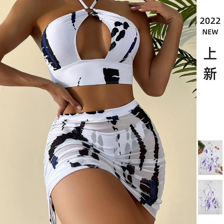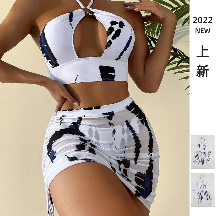 유럽과 미국 새로운 디지털 인쇄 비키니 수영복 쓰리 피스 비치 원피스 여성 수영복 비키니