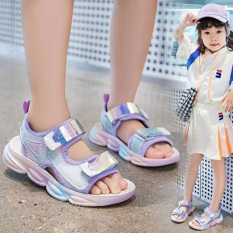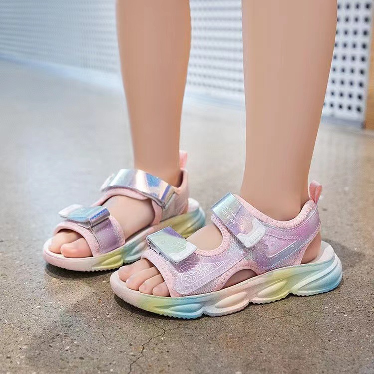 어린이 샌들 새로운 2023 여름 편안한 색상 큰 어린이 패션 캐주얼 소녀 비치 신발 학생 어린이 신발