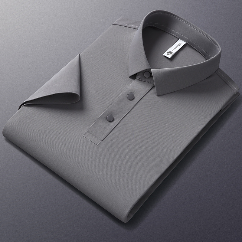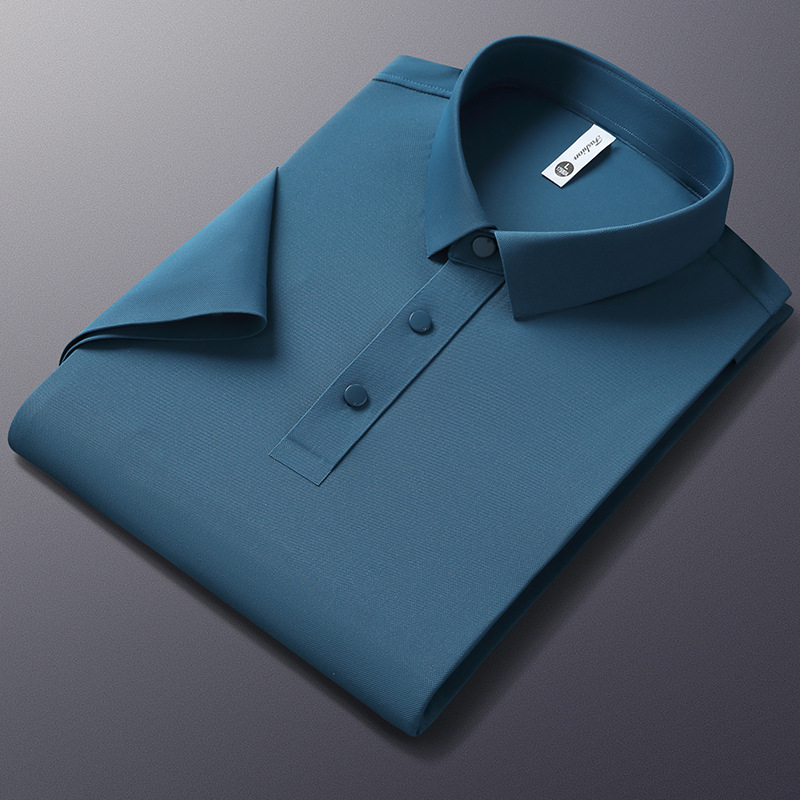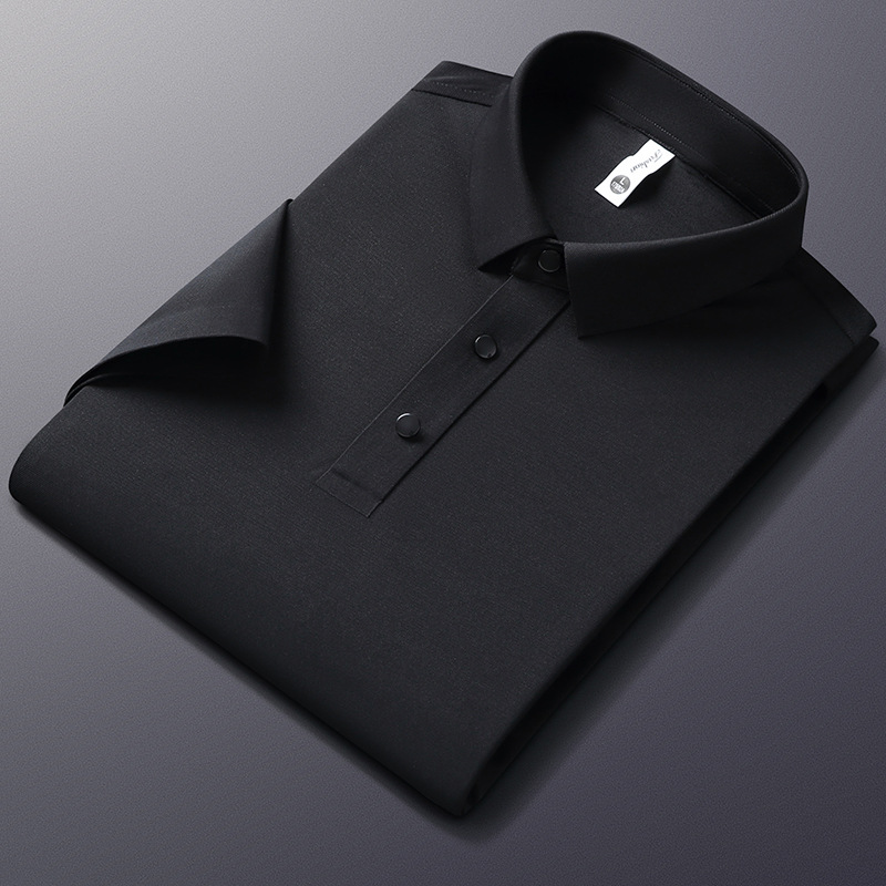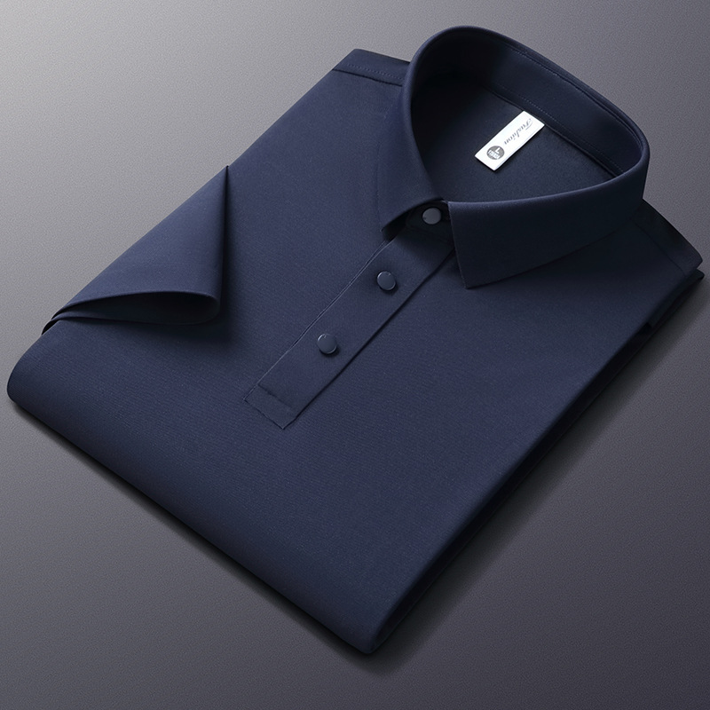 여름 남성 탑 하이 스트레치 암모니아 니트 심리스 압력 접착제 단색 폴로 셔츠 반팔 비 다림질 주름 방지 티셔츠