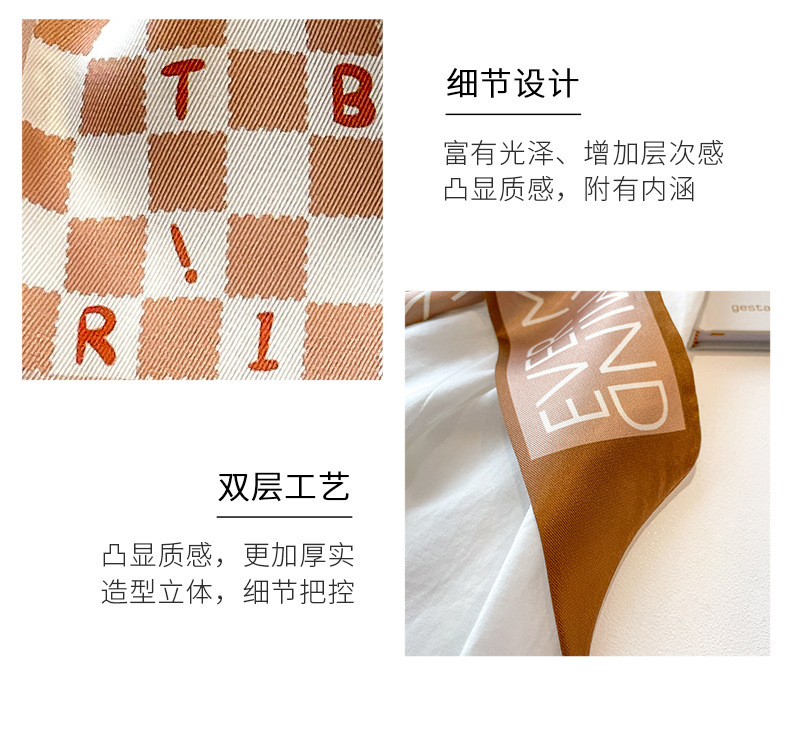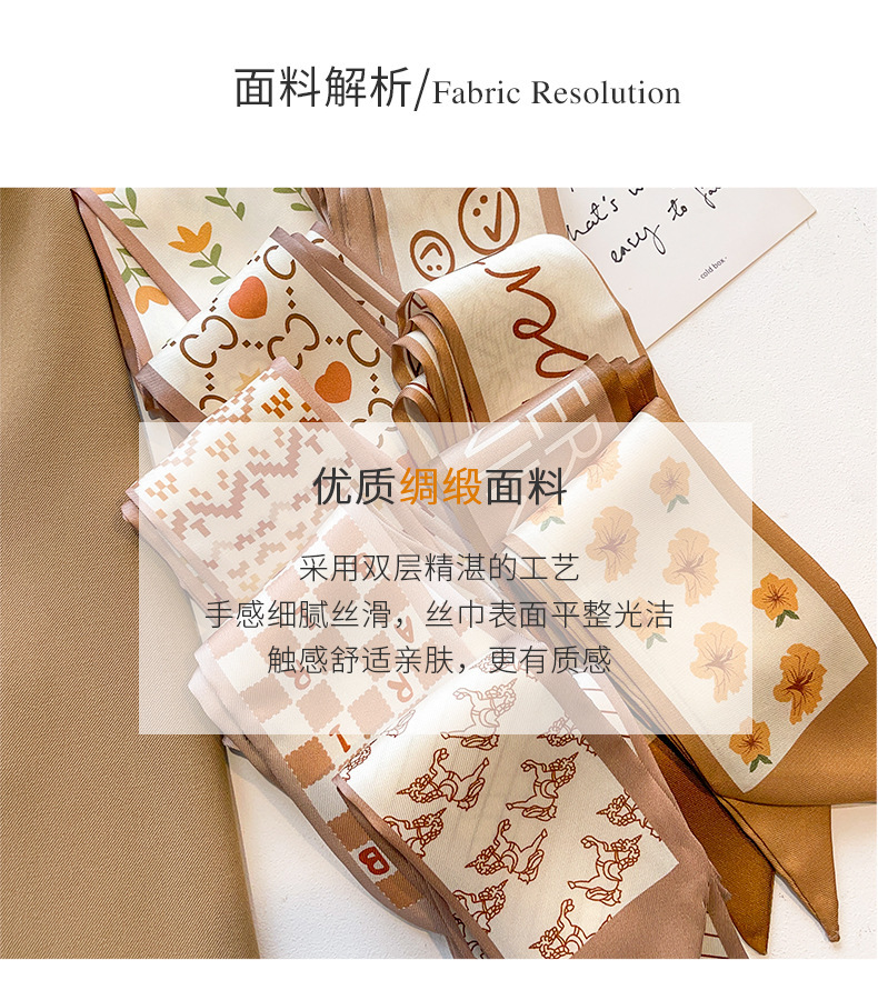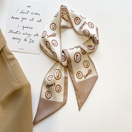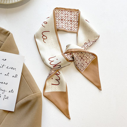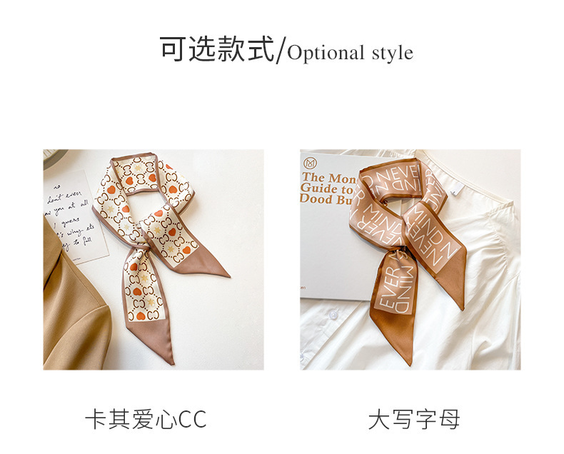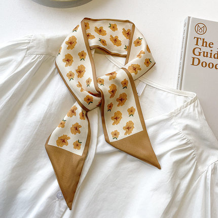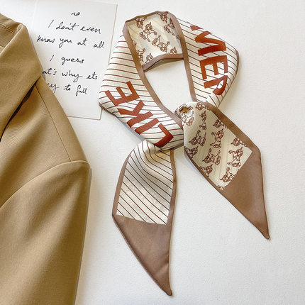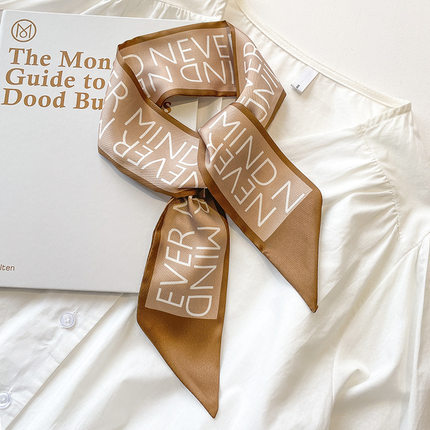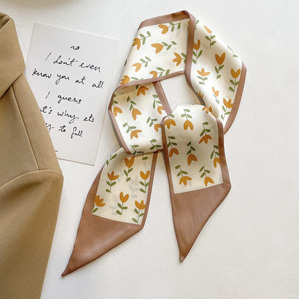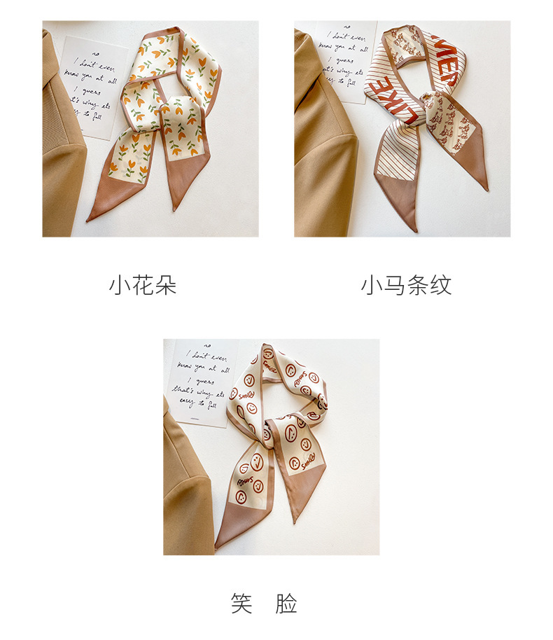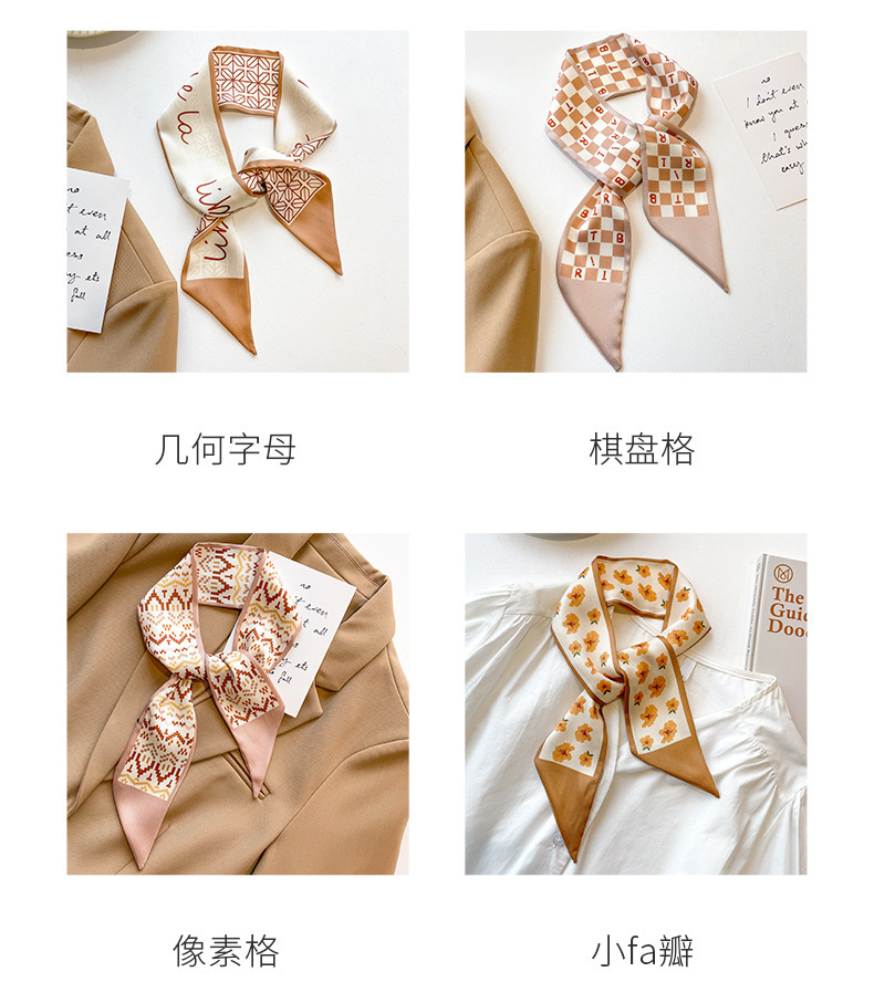 한국 인스타 감성 여성용 스몰 실크 스카프, 긴 스트립 헤어밴드, 포니테일 머리끈, 얇은 넥 스카프, 봄 스타일 사선 스카프스토어 가기