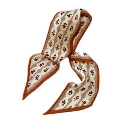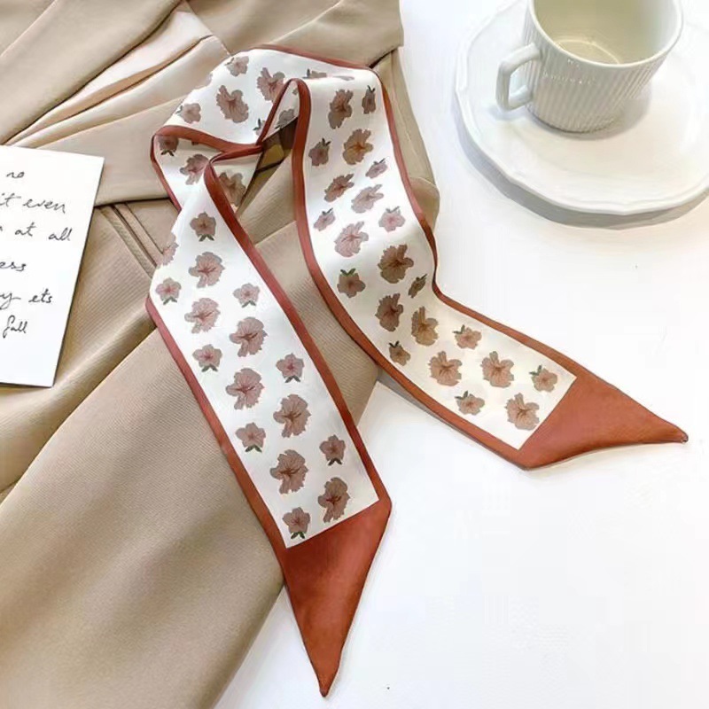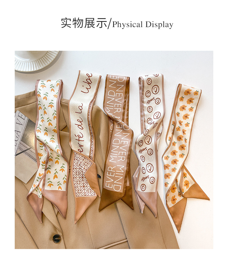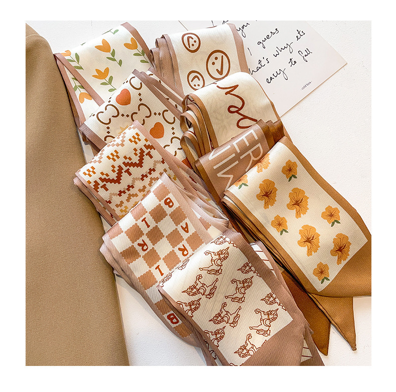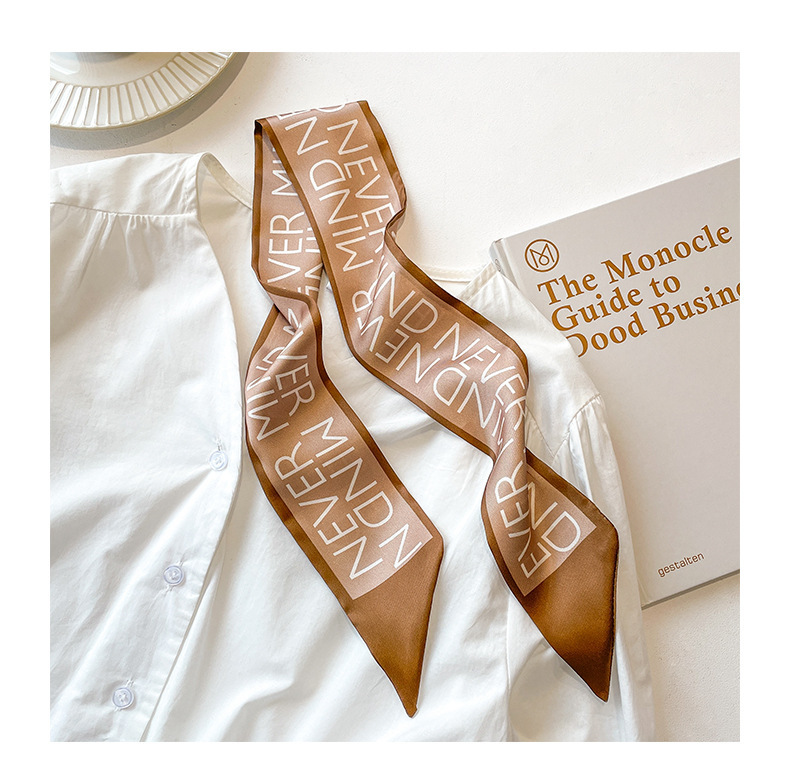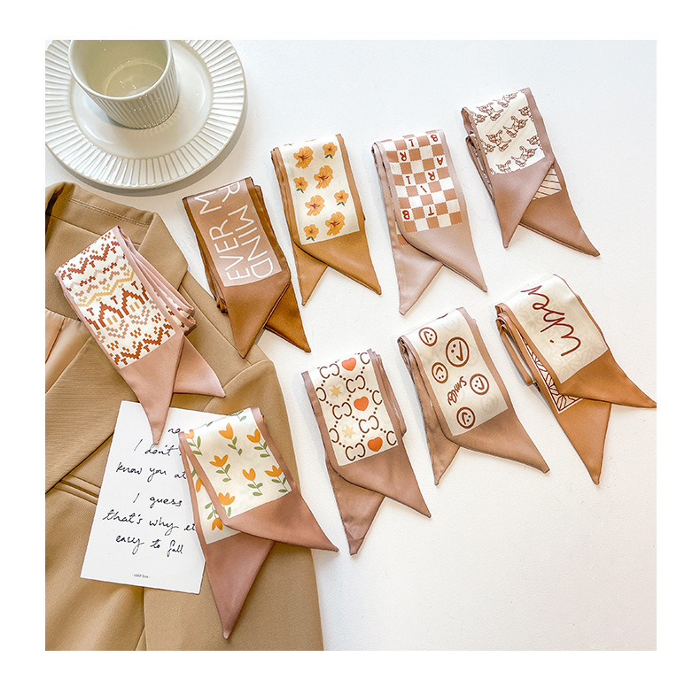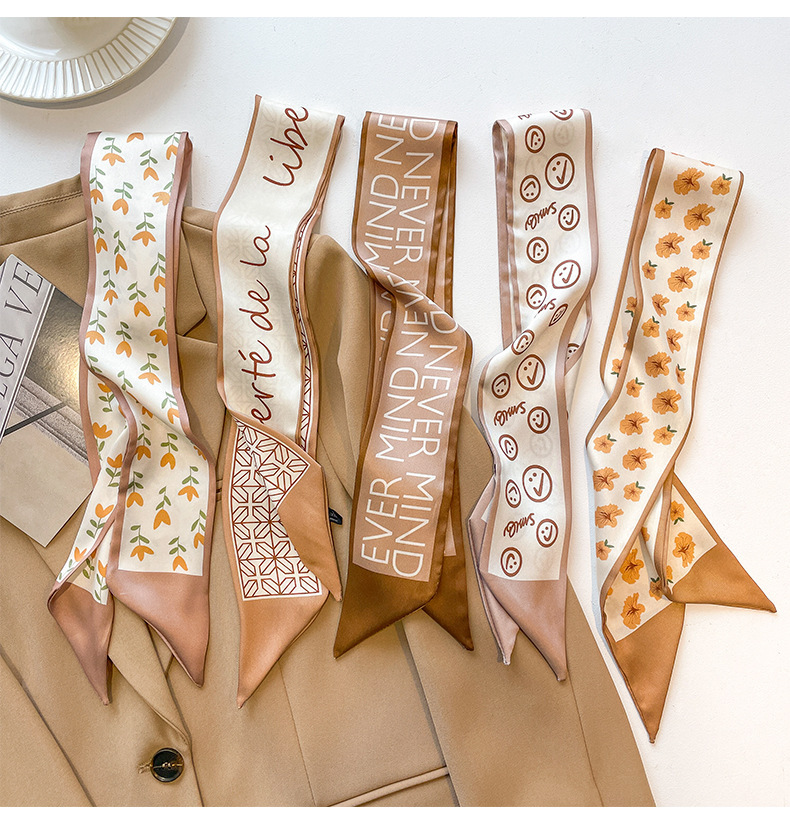 한국 인스타 감성 여성용 스몰 실크 스카프, 긴 스트립 헤어밴드, 포니테일 머리끈, 얇은 넥 스카프, 봄 스타일 사선 스카프