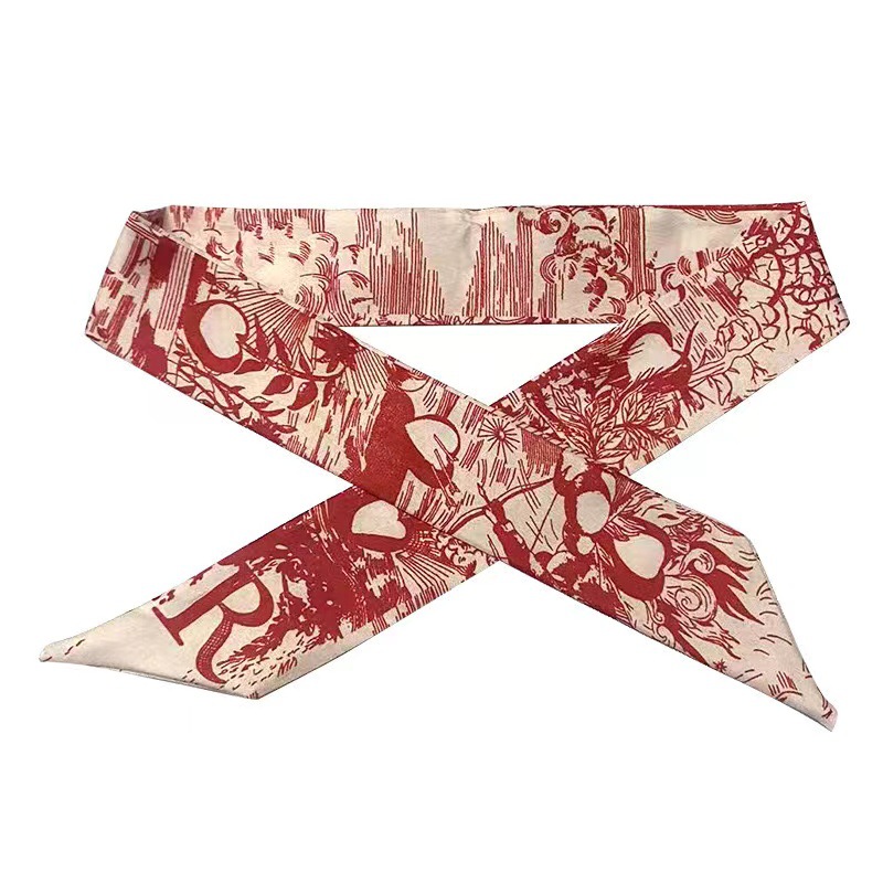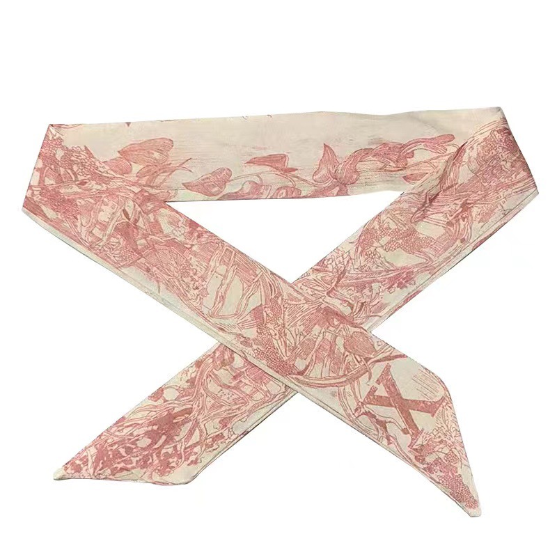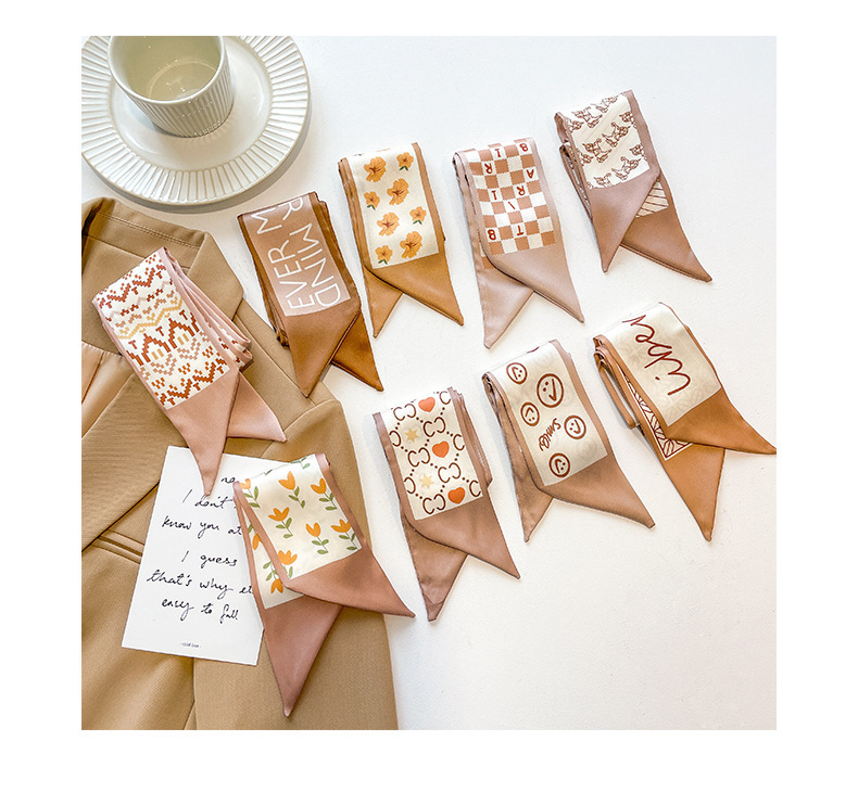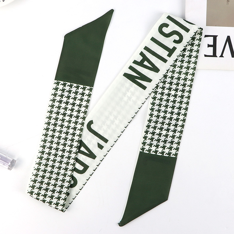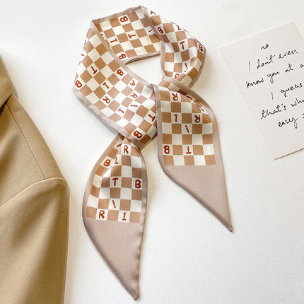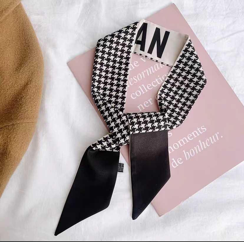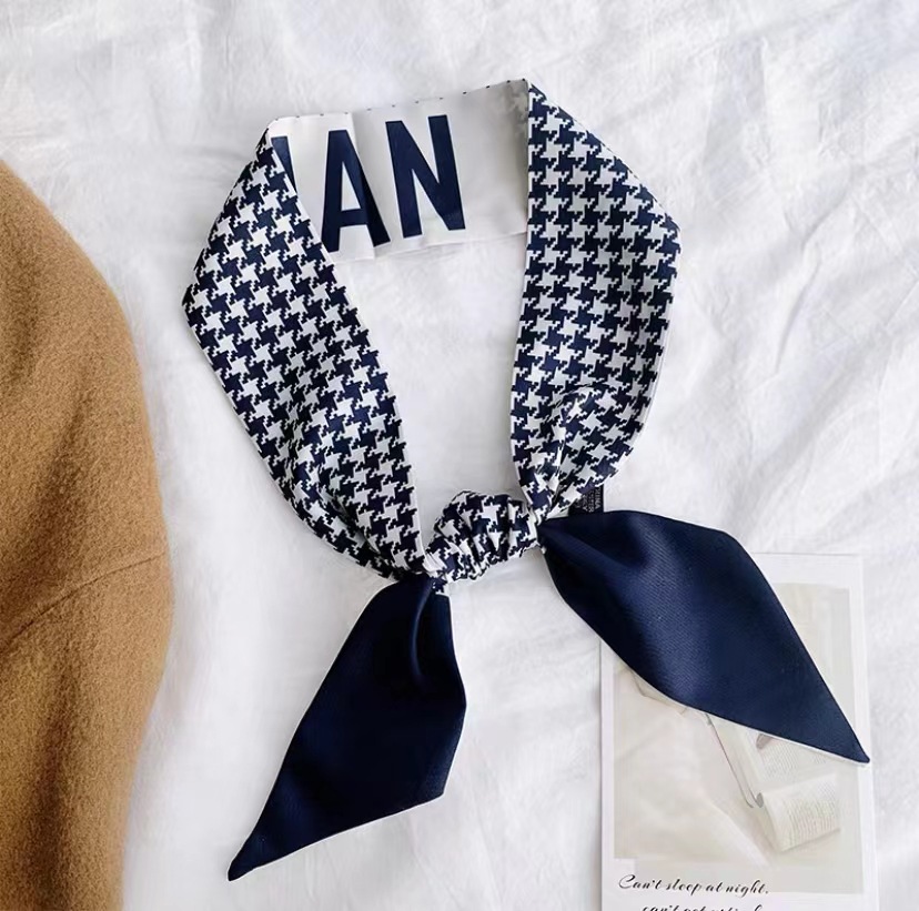 한국 인스타 감성 여성용 스몰 실크 스카프, 긴 스트립 헤어밴드, 포니테일 머리끈, 얇은 넥 스카프, 봄 스타일 사선 스카프