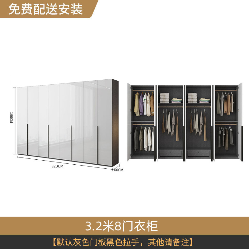 사용자 정의 빛 럭셔리 플랫 도어 옷장 간단한 현대 침실 홈 8 도어 옷장 조합 대형 옷장 랙 캐비닛스토어 가기