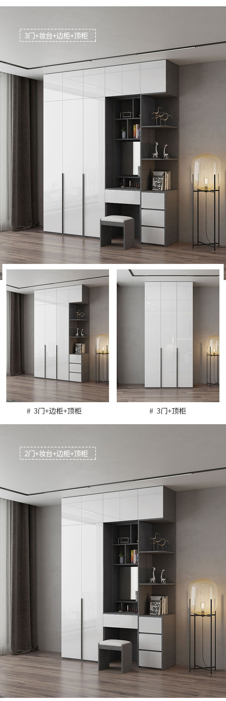 • 0.8 m 옷장 + 측면 캐비닛 + 상단 캐비닛