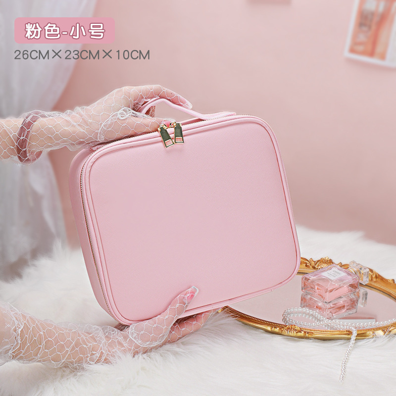 대용량 화장품 가방 PU 가죽 여행 휴대용 화장품 케이스 핑크 귀여운 가방 화장품 보관 상자