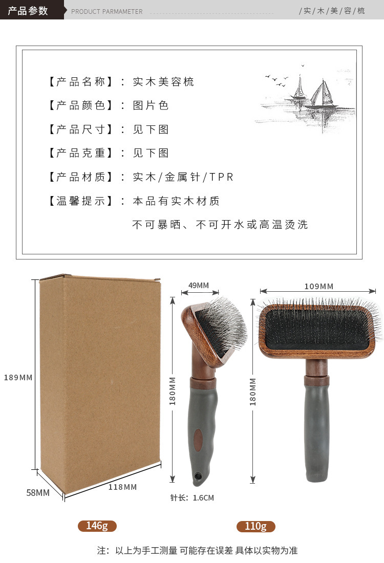 • 사각 머리 바늘 빗 컬러 박스 포장