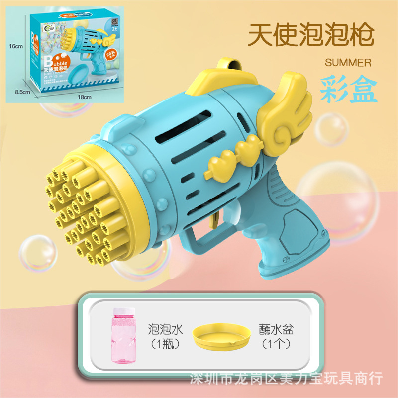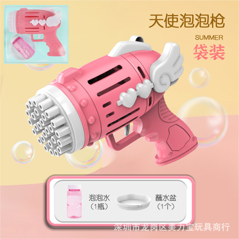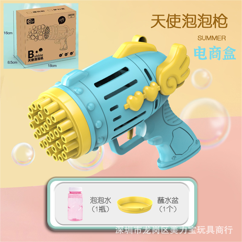인터넷 유명 인사 스타일 28 홀 버블 건 전기 다공성 엔젤 버블 머신 개 틀린 어린이 거품 부는 장난감스토어 가기