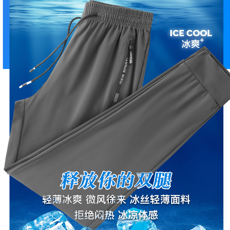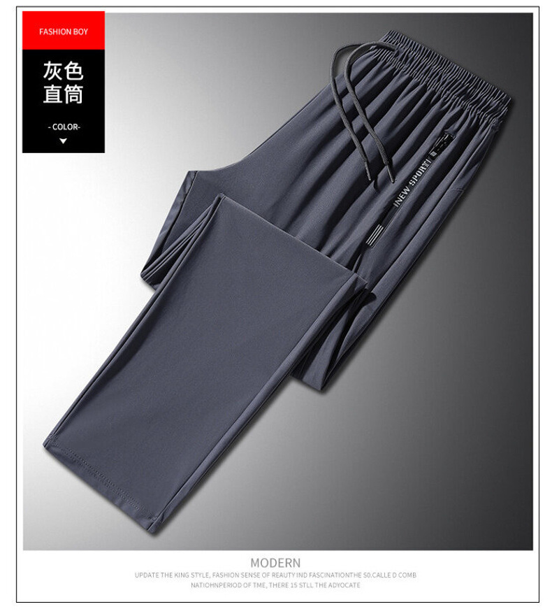 L-8XL 플러스 사이즈 남자 아이스 실크 바지 뚱뚱한 남자를위한 높은 탄성 바지 스포츠 캐주얼 바지 달리기 남자스토어 가기