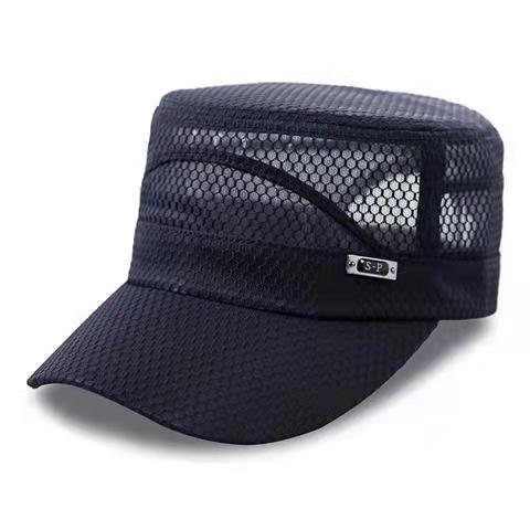 모자 남성 여름 중년 및 노인 플랫 탑 모자 캐주얼 야외 낚시 모자 자외선 차단제 차양 모자 통기성 메쉬 플랫 탑 모자