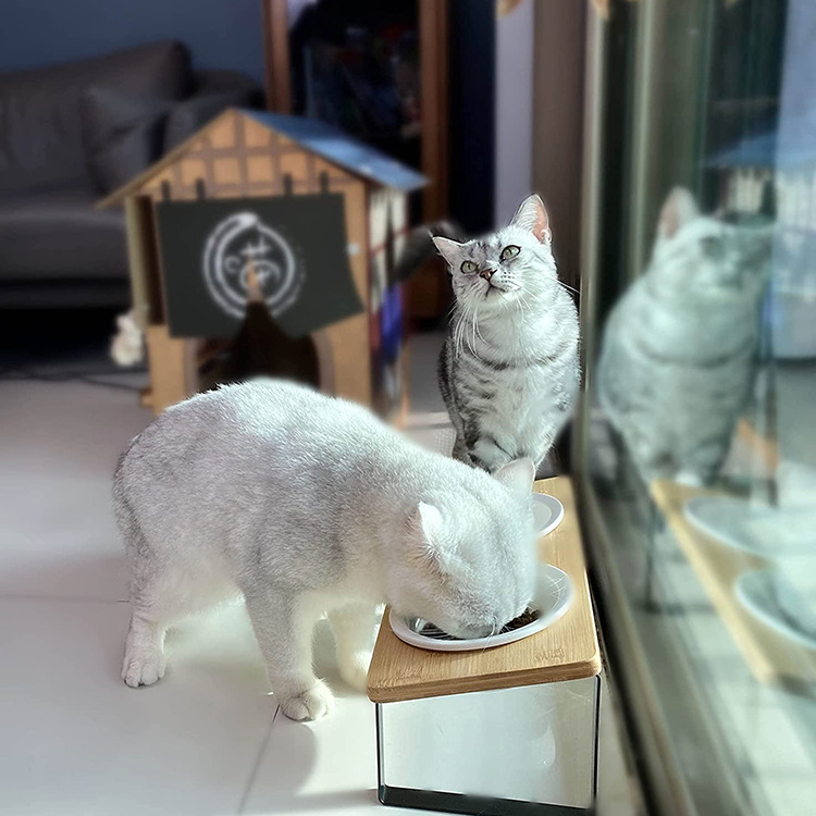 나무 고양이 그릇 랙 애완 동물 나무 고양이와 개 그릇 랙 더블 그릇 냄비 랙 애완 동물 식기 작은 개와 고양이 애완 동물 식탁스토어 가기