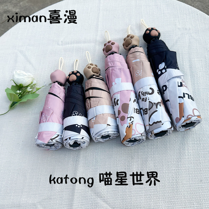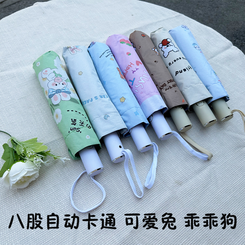 자동 우산 블랙 고무 선 스크린 우산 접히는 높은 감각 경량 작은 창조적 인 보강 안티 폭풍 도매 인쇄 가능한 로고