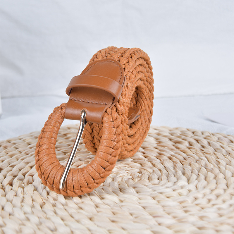 재고 간단한 모든 일치 왁스 로프 짠 벨트 여자의 장식 청바지 여자의 비 천공 벨트 제조 업체 도매