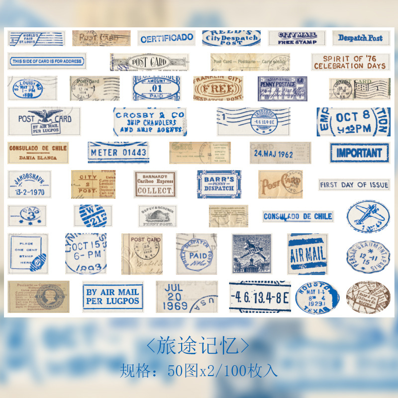 모닝 폼 스티커 팩 추억 시리즈 찾기 복고풍 기능 스타일 핸드북 소재 장식 스티커 100개 4가지 스타일