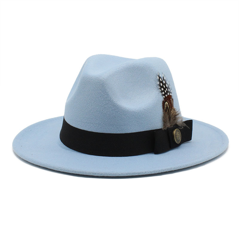 흰 양모 신사 클래식 영국 재즈 깃털 토퍼 수정 얼굴 양모 펠트 모자 남성과 여성을위한스토어 가기