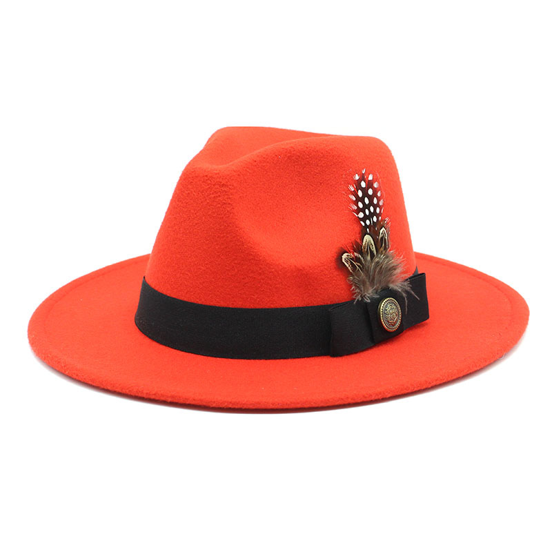흰 양모 신사 클래식 영국 재즈 깃털 토퍼 수정 얼굴 양모 펠트 모자 남성과 여성을위한