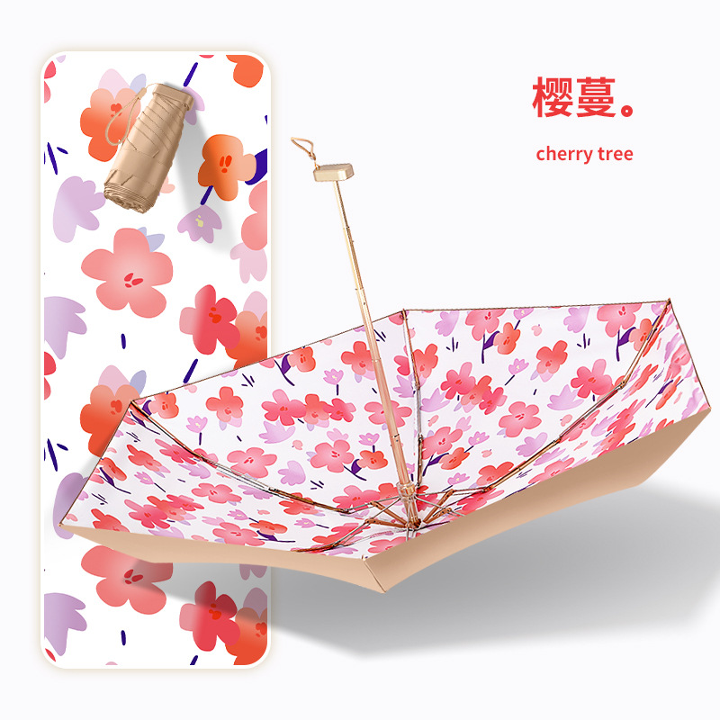 남성과 여성을위한 우산 플랫 5 배 울트라 라이트 미니 우산 자외선 차단제 UV 보호 티타늄 우산 비즈니스 광고 선물 태양 우산
