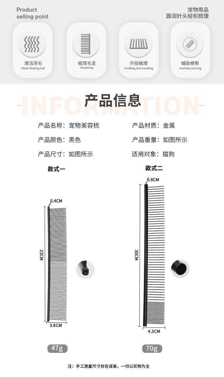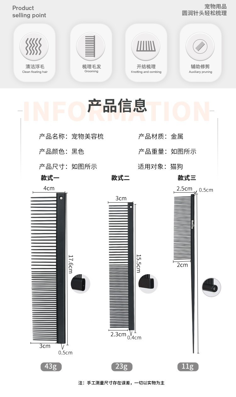 히스토트리 애완동물 빗 고양이 털 정리 빗 강아지 엉킴 풀기 미용 빗 고양이 빗 애완용품