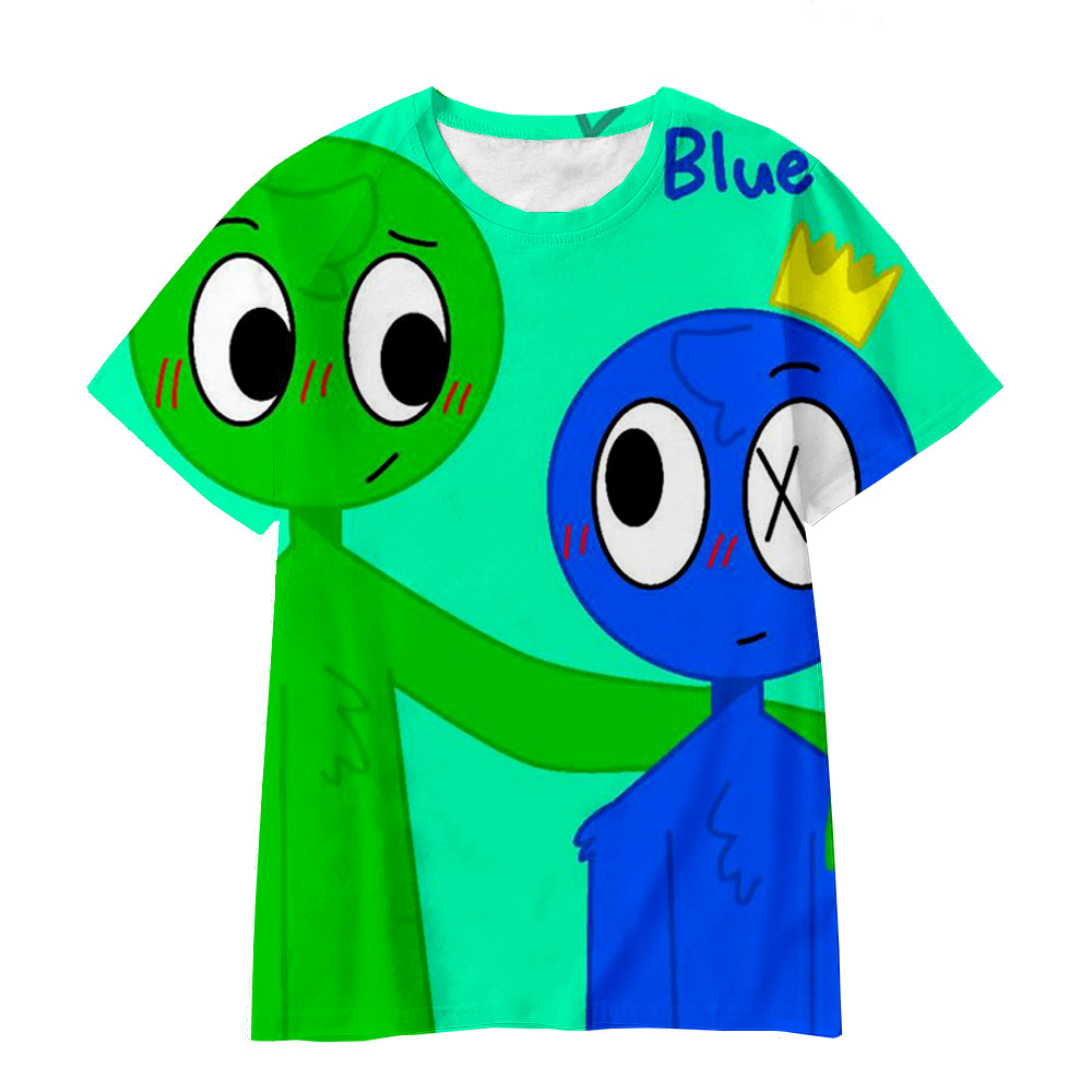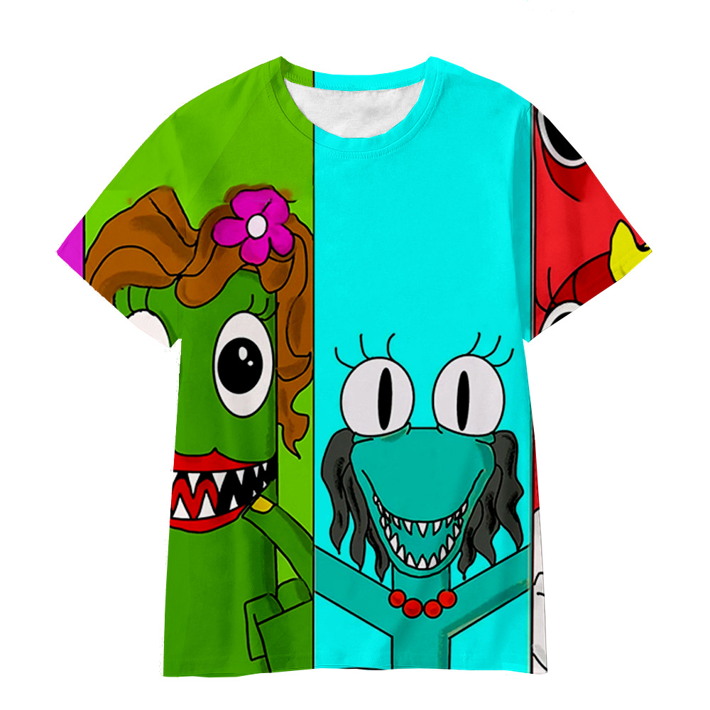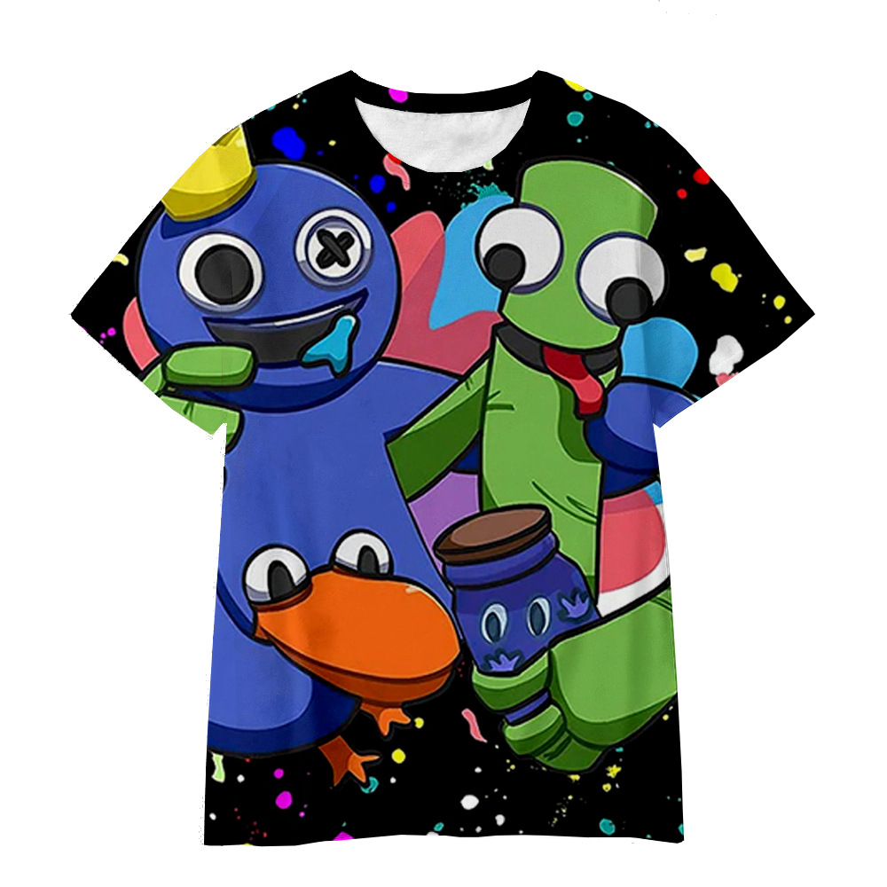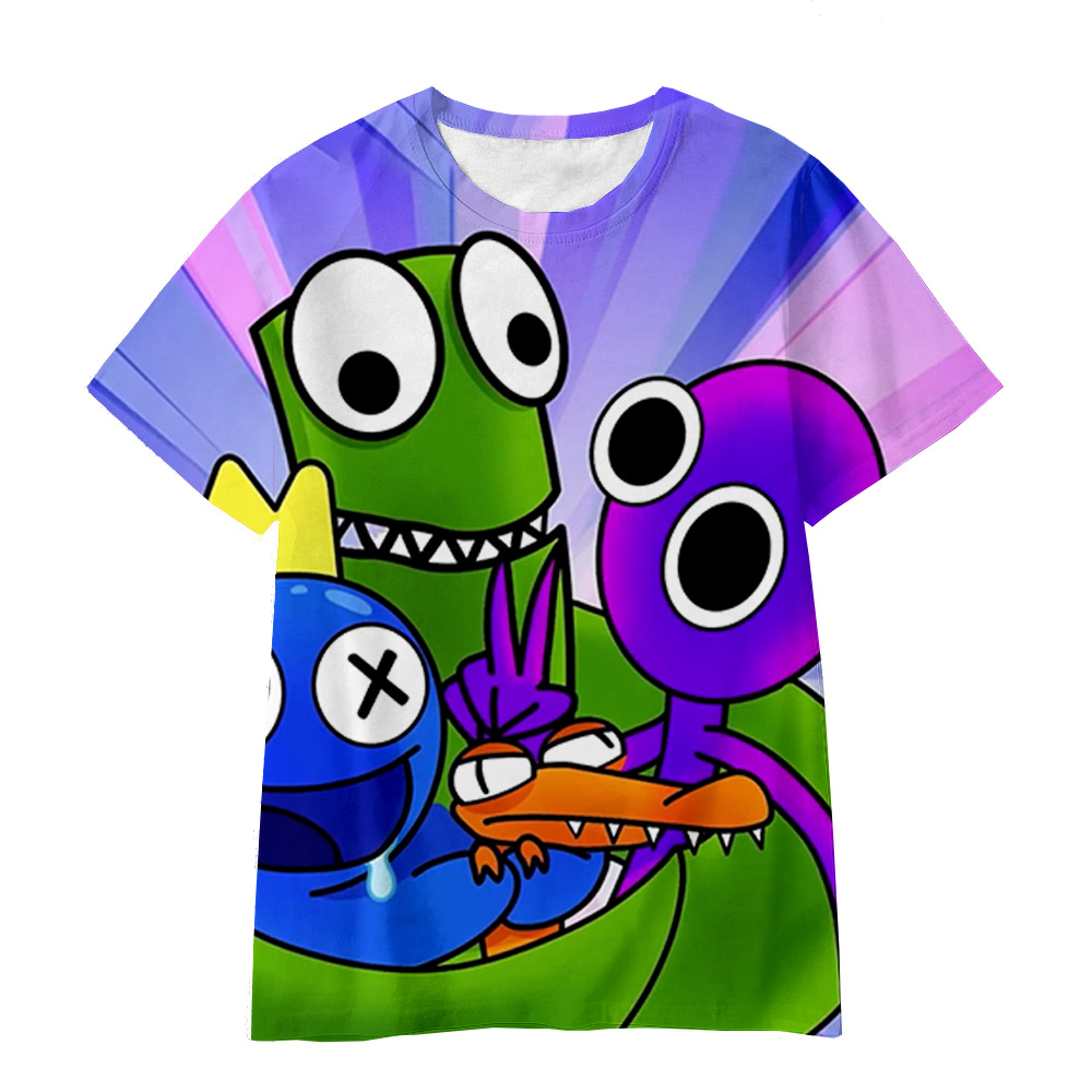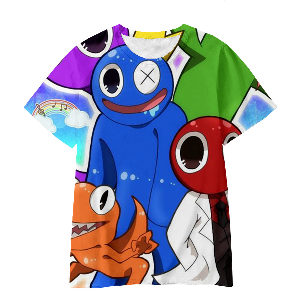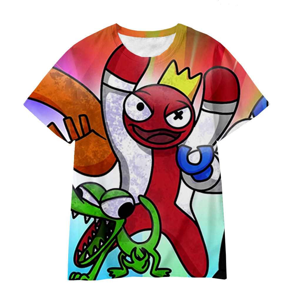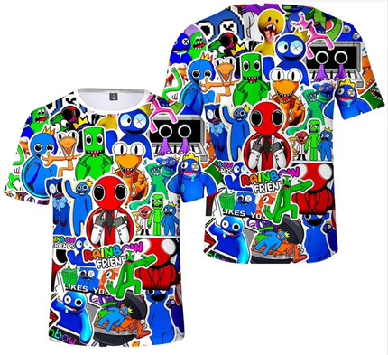 2023 여름의 신대외 무역 남자 스포츠 반팔 애니메이션 레인보우 프렌드 3D 디지털 프린팅스토어 가기
